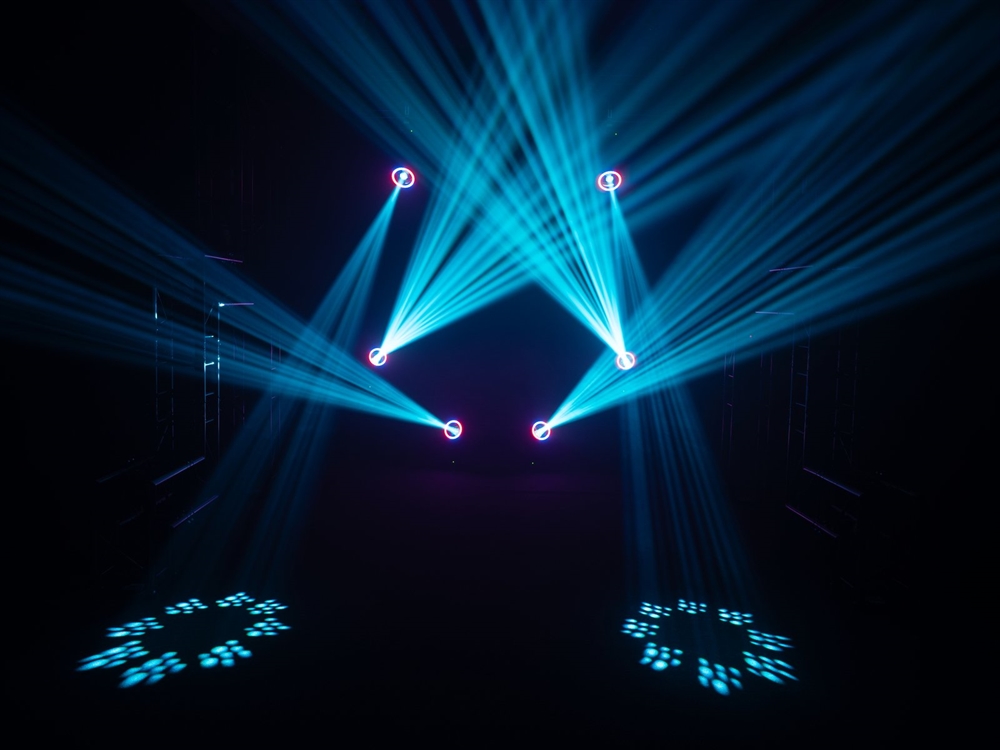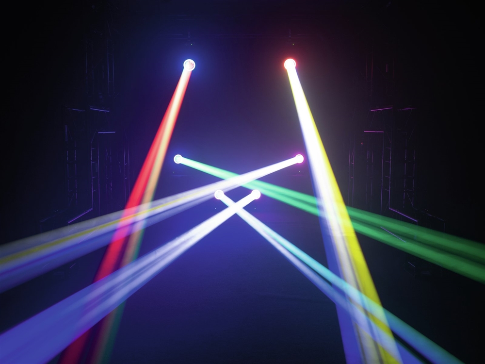 | Farvegenerering: | Farvehjul med 7 dichroiske filtre plus åben Halve farver valgbar, Rainbow effekt med justerbar hastighed i begge retninger |