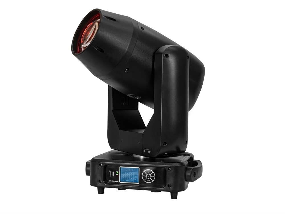 Udstyret med en kraftfuld 400-watt COB LED, genererer TMH-S400 intens, køligt hvidt lys med imponerende luminositet. Dens motoriserede zoom tillader en fleksibel lysstråle, der kan justeres fra en smal 6° til en bred 32°, hvilket gør den perfekt til forskellige belysningsapplikationer som en stråle, spot eller vaske lys.