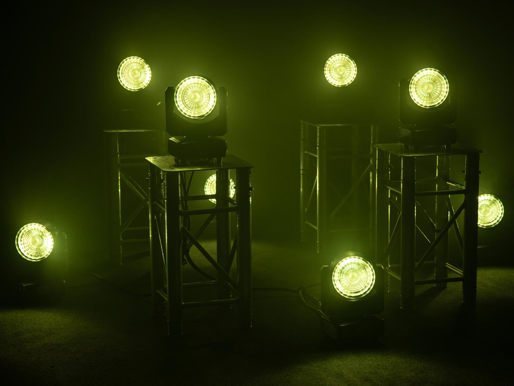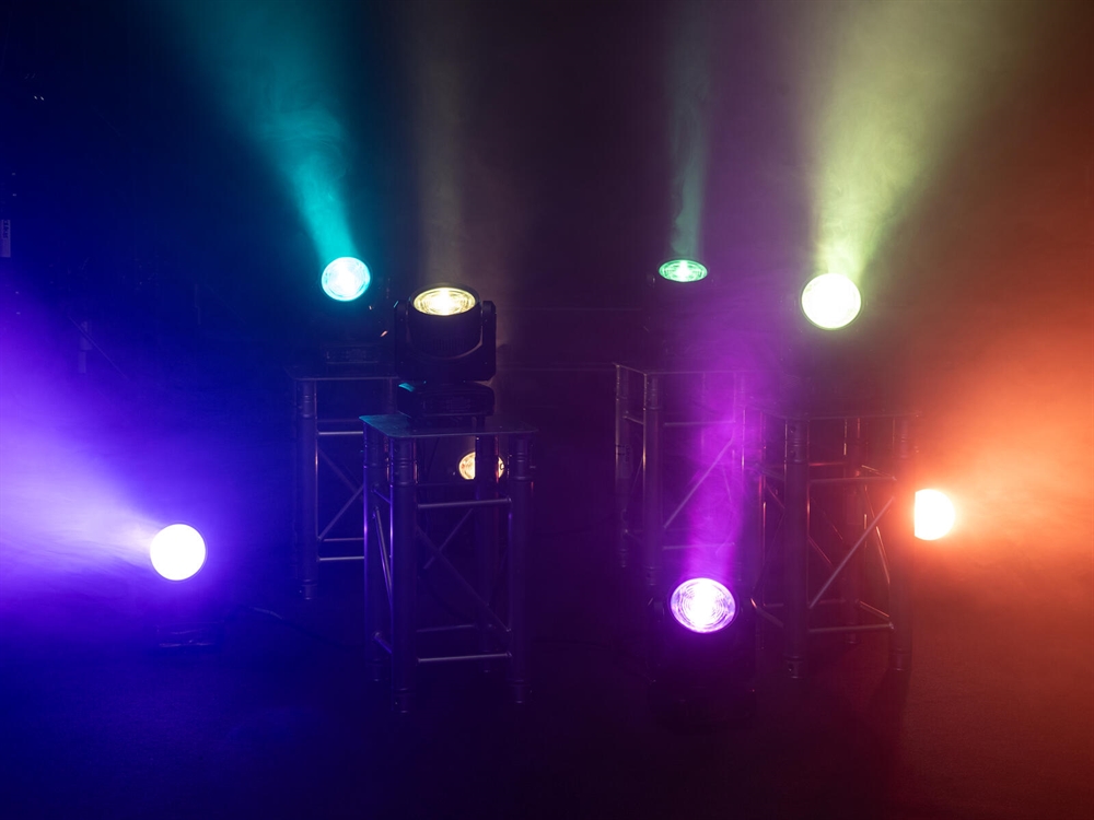 1 x 120 W COB (chip-on-board) 4in1 QCL RGB/WW (homogen farveblanding)