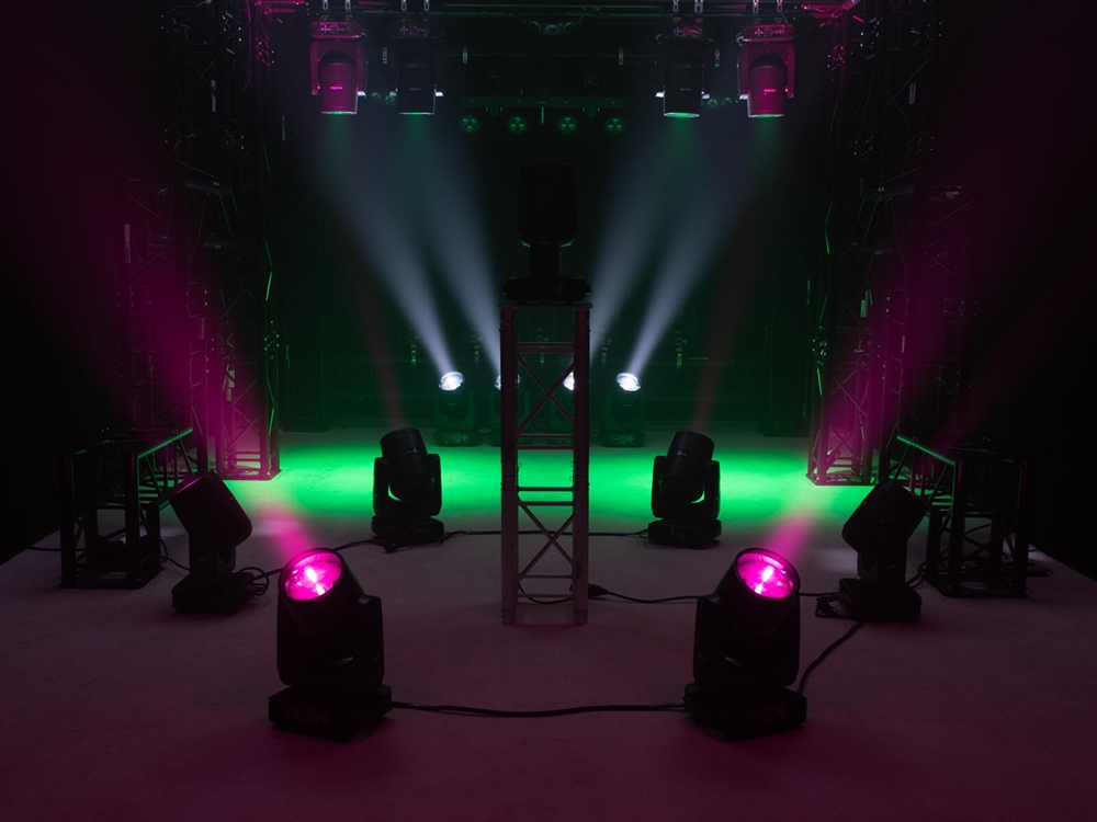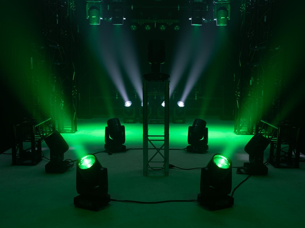 Farveblandingen af vaskelyset er baseret på rødt, grønt, blåt og hvidt. En særlig funktion her er det hvide: Det er ikke kold hvid som sædvanligt, men varm hvid, og dets farvegengivelsesindeks, dvs. lyskvaliteten, er en ekstremt god værdi på over 90. Dette gør også spotlighten til et fremragende valg som frontlys på koncertscener. Linsen i spotlighten er motoriseret, og strålevinklen kan derfor variere fra 9° til 48°.