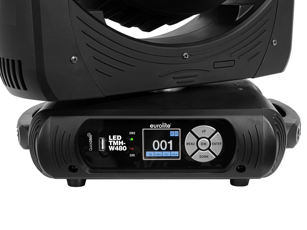 | Control: | Stand-alone; DMX; QuickDMX via USB (optional); W-DMX by wireless solution via USB (optional); CRMX by LumenRadio via USB (optional); Sound to light via Microphone; Master/slave function |