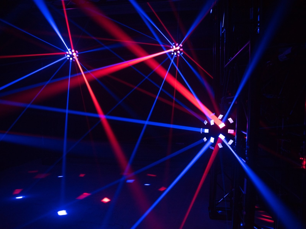 5 x 10 W LED i farverne rød, grøn, blå, hvid og rav til dynamiske stroboskop- og derbyeffekter