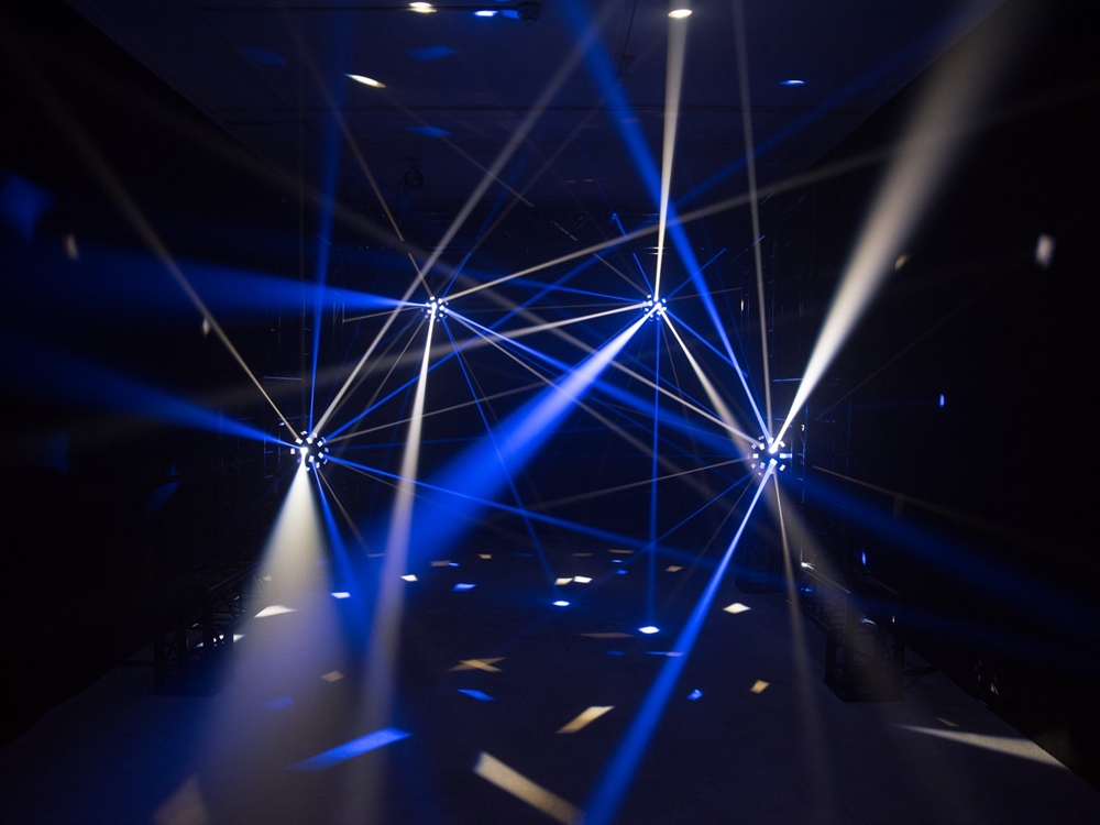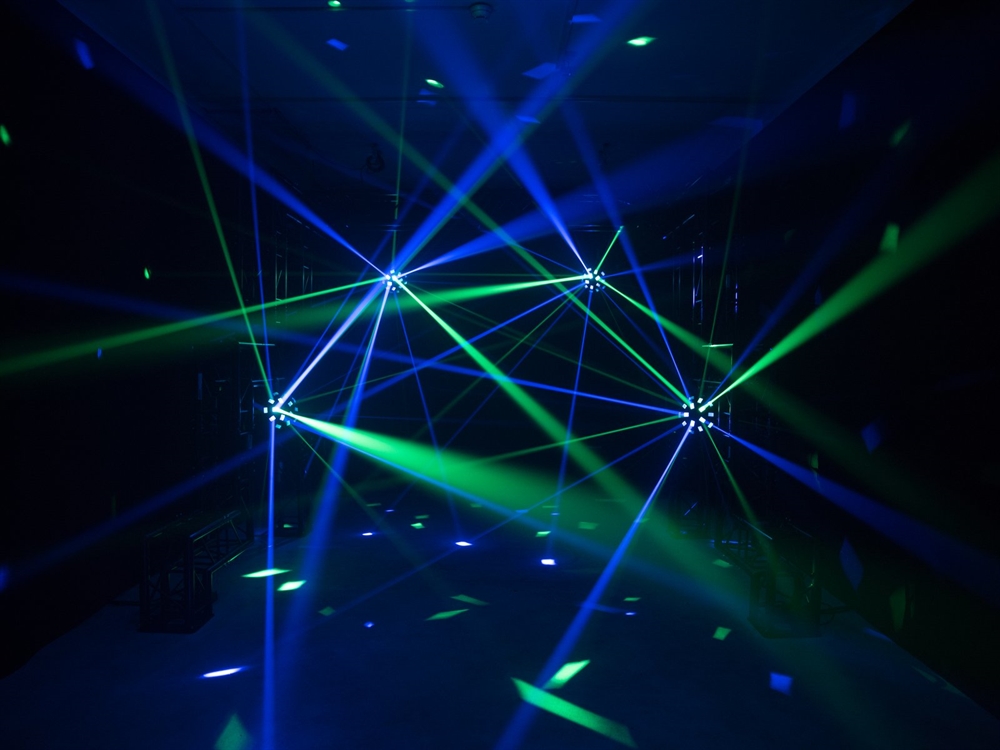 De farvestrålende stråler ændrer deres bevægelsesretning ved hvert basbeat i lydstyret tilstand