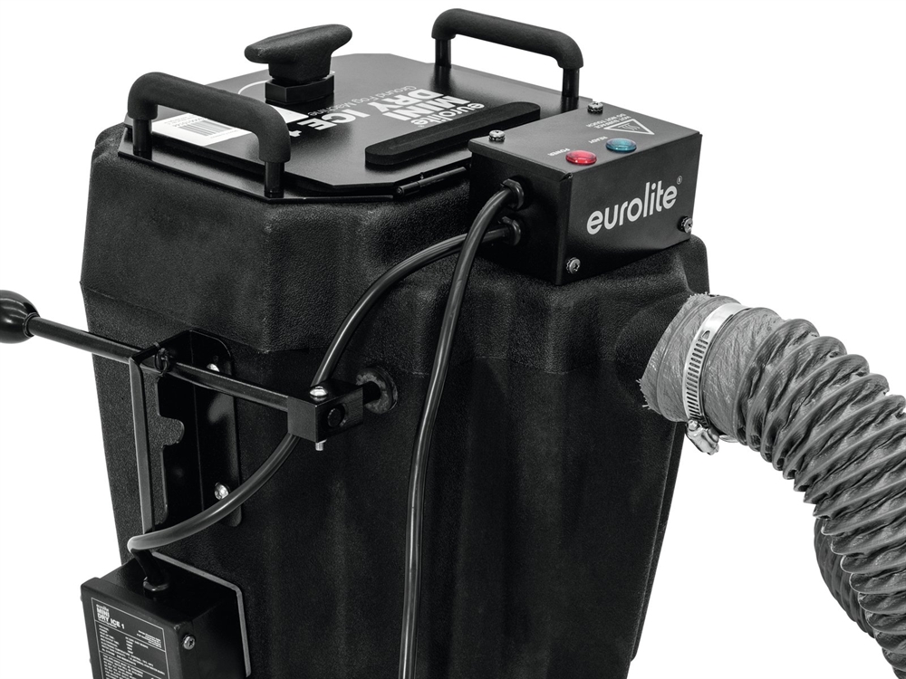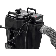 The machine vaporizes dry ice using hot water to create a flowing, low-lying ground mist. The heating time is less than 15 minutes. With 2500 watts, the small fog machine produces a continuous fog output of approx. 2.5 minutes at full power.