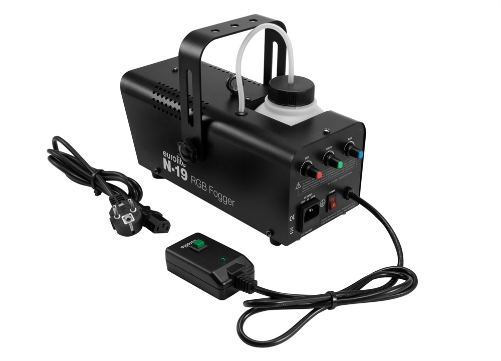 Kompakt røgmaskine med 600 watt effekt, LED-belysning, kabel-fjernbetjening