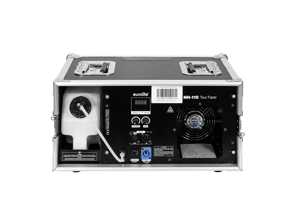 Her er du: Disconetto » RØG & EFFEKT » Røgmaskiner » Haze og cracker maskiner Eurolite NH-110 Tour Fazer På lager På lager, 3-5 hverdage Bedømmelse for Eurolite NH-110 Tour FazerBedømmelse: 1 ud af 5 baseret på 4 stemmer 5.939,00DKK ved 1 stk. Vis uden moms Trustpilot Powerful 1000 W fazer (DMX/manual operation), in its own case EUROLITE NH-110 Tour Fazer Eurolite NH-110 On the road with power The Eurolite NH-110 is a tour fazer with a robust construction and a powerful heating capacity of 1000 watts. It is installed in a sturdy flight case, easy to transport and has an innovative quick connector on the fluid tank: ideal for touring, stages and clubs. Equipment The powerful, compact Tour Fazer NH-110 is integrated in a stable flight case - making it ideal for touring use. The powerful 1000 watts of heating power ensures a strong fog output of up to 3 metres in width. Well thought-out details The NH-110's built-in "Instant Stop" ensures that the fazer can be controlled particularly cleanly: the function prevents fogging when the fogging function is switched off. The innovative quick release system allows the fluid hose to be quickly and easily disconnected from the canister and easily removed from the machine. Ideal for stage and studio The Fazer is a very good choice for stage applications or for large live events, in discotheques, theaters or TV and film productions, where it enhances the effect of spotlights and laser beams. Powerful 1000 W fazer (DMX/manual operation), in its own case Integration in a stackable flightcase makes the machine tough, durable and easy to carry Produces fine, translucent haze without nebulizing the room at the same time Ideal for accentuating light and laser beams Fog output and fan speed variably adjustable via rotary controls Instant stop feature allows for precise output control without any sputtering Auto temperature control Fluid hose easily removable via quick connector Short warm-up time Output distance: Approx. 3 m Control via stand-alone; DMX Preprogrammed in Light´J; LED PC-Control 512; Light Captain For application areas such as: Stage; Clubs/dancing school; Lender Removable tank Operates on water-based fluid Package contents 1 x device, 1 x user manual, 1 x power cord, 1 x container, 1 x tube Power supply:230 V AC, 50 HzPower consumption:1100 WIP classification:IP20Power connection:Mains input via P-Con (blue), mounting version power supply cord with safety plug (provided)Warm-up time:Approx. 3 minOutput volume:Approx. 170 m³/minOutput distance:Approx. 3 mTank capacity:3,5 l water-based fluid removable tankFluid consumption:Approx. 15 ml/minDMX channels:2DMX input:1 x 3-pin XLR (M) mounting versionDMX output:1 x 3-pin XLR (F) mounting versionControl:Stand-alone; DMXPreprogrammed in:Light´J; LED PC-Control 512; Light CaptainHousing color:BlackHeater:1000 WControls:Low fluidColor:BlackDimensions:Width: 39 cmDepth: 50 cmHeight: 26,5 cmWeight:14,45 kg Varenr.: E-51701989 Vi anbefaler Røgvæske "B2D" Medium Røg - Medium Hængetid. 5 Liter DKK 149,00 Røgvæske "C2D" Standard Røg - Standard Hængetid. 5 Liter DKK 179,00 Røgvæske "P2D" Tyk Røg - Lang Hængetid. 5 Liter. Mest Solgte DKK 199,00 Eurolite Fog fragrance sæt: with all 14 types DKK 509,00 Røgvæske "E2D" Tyk Røg - Ekstrem Lang Hængetid. 5 Liter DKK 279,00