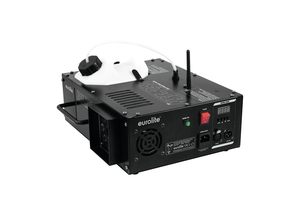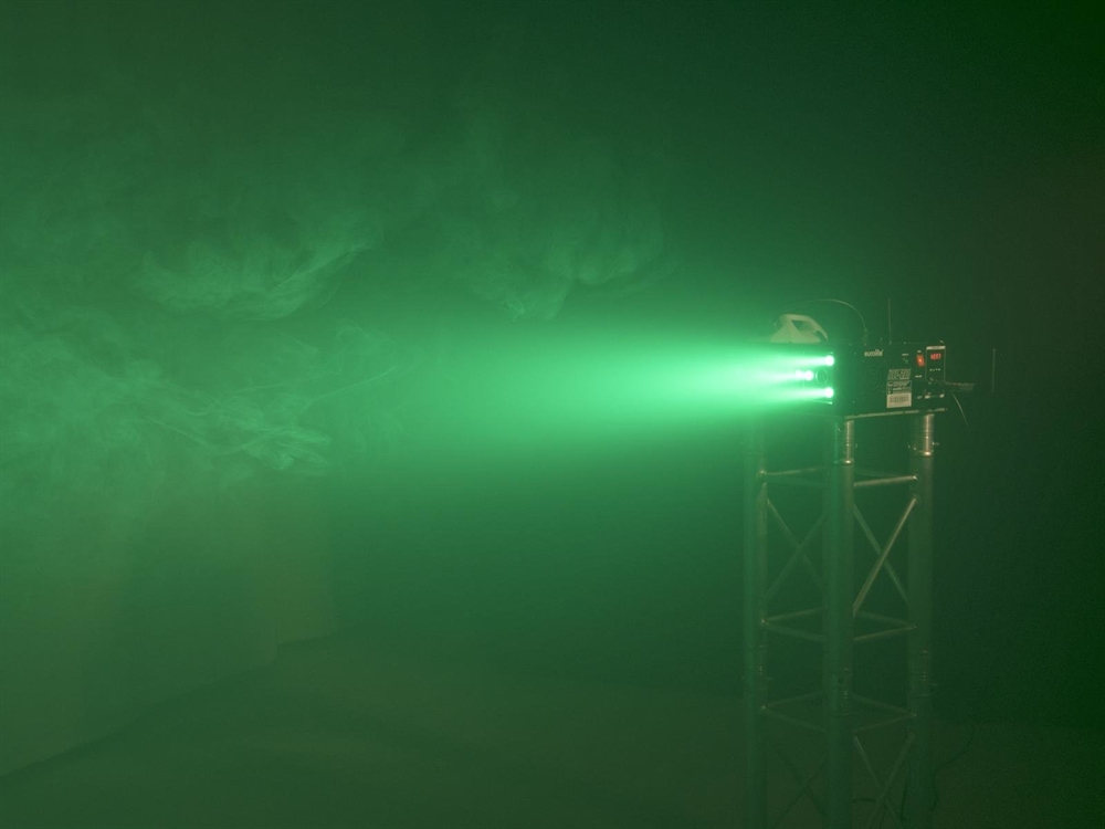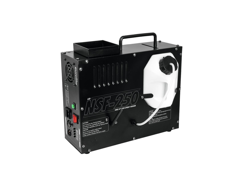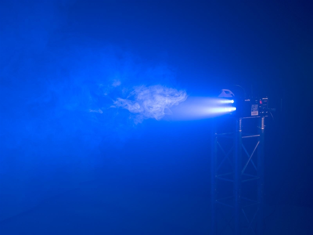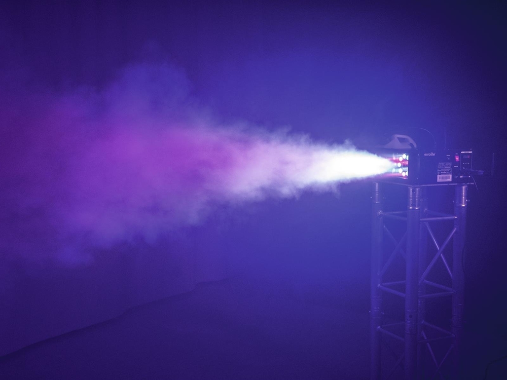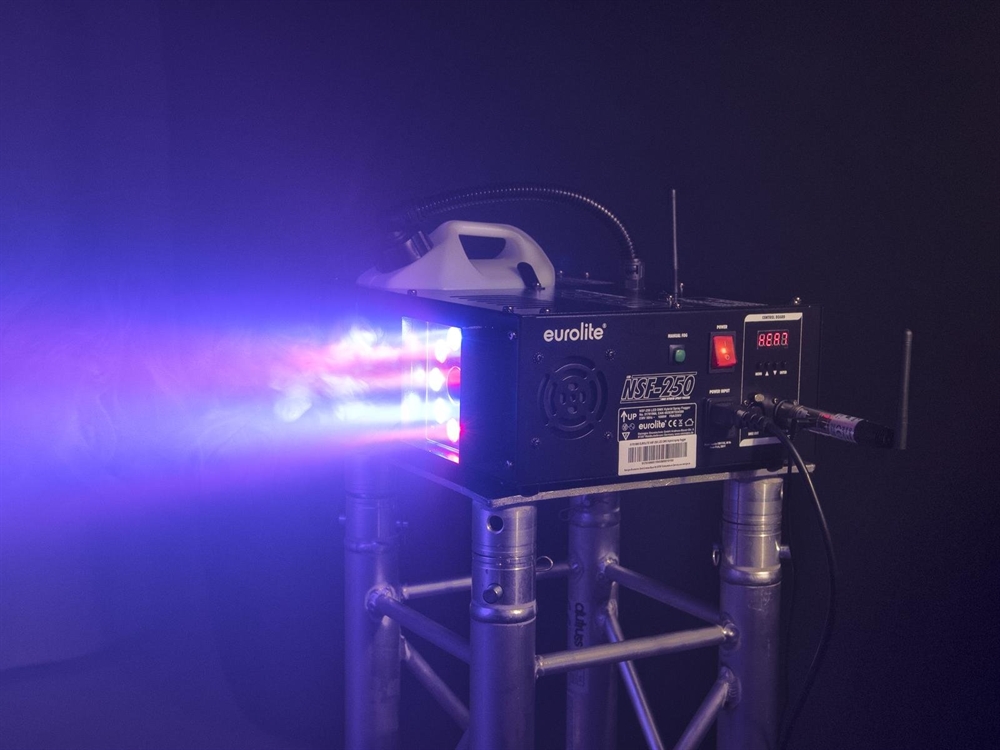 The NSF-250 from Eurolite is a hybrid fogger. It combines a fog machine with a lower/horizontal output with a RGB light effect. What sounds unspectacular at first is a real effect miracle on stage:
