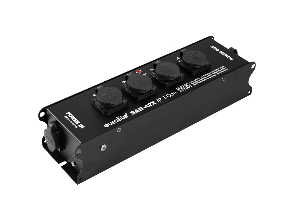 Her er du: Disconetto » KABEL & STIK » Strømfordeling » Powercon splittere Eurolite SAB-42X IP T-Con Strøm Split Box På lager På lager, 3-5 hverdage Bedømmelse for Eurolite SAB-42X IP T-Con Strøm Split BoxProduktet er endnu ikke bedømt 769,00DKK ved 1 stk. Vis uden moms Trustpilot strømfordeler med IP T-Con indgang og udgang Kraftfuld strømdistributor med IP T-Con indgang og udgang Designet til fleksibel brug på scenen eller riggen Option for truss-vedhæftning (M10 indvendig gevind) Robust metalhus Pakkeindhold 1 x enhed, 1 x brugermanual Strømforsyning:230 V AC, 50 Hz Strømforbrug:3680 W IP-klassifikation:IP20 Beskyttelsesklasse:Beskyttelsesklasse I Udgående strøm:Max. 16 A Strømtilslutning:Via IP T-Con (M) monteringsversion Strømudgang:5 x IP T-Con (F) Husfarve:Sort Monteringssystem:M10 gevind Fase status display:1 Dimensioner:Længde: 30,0 cmBredde: 8,6 cmHøjde: 7,5 cm Vægt:1,08 kg Varenr.: E-60003765
