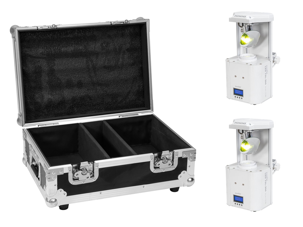 Her er du: Disconetto » LYS » Scanner og Movinghead » Scanner Eurolite sæt: 2 x LED TSL-350 Scan COB white + Case På lager På lager, 3-5 hverdage Bedømmelse for Eurolite sæt: 2 x LED TSL-350 Scan COB white + CaseProduktet er endnu ikke bedømt 8.199,00DKK ved 1 stk. Vis uden moms Trustpilot EUROLITE Set 2x LED TSL-350 Scan COB white + Case Dette sæt bestående af: 2 x EUROLITE LED TSL-350 Scan COB wh 1 x ROADINGER Flightcase 2x TSL-150/250/350 EUROLITE LED TSL-350 Scan COB whHandy scanner with 60 W COB LED, gobo and color wheelCompact design1 powerful LED 60 W COB (chip-on-board) cold white (CW)Positioning within PAN and TILTColor wheel; gobo wheel with rotating gobos; Focus manualColor wheel with 7 dichroic filters plus openRainbow effect with adjustable speedGobo wheel with rotating gobos, 7 gobos and openSlot-in gobo system for easy gobo replacementShake effectIntegrated show programsThe device is cooled by cooling fanControl via stand-alone; DMX; QuickDMX via USB (optional); Master/slave function; Sound to light via Microphone; W-DMX by wireless solution via USB (optional); CRMX by LumenRadio via USB (optional)Flicker-freeWith a beam angle of 11°LCD displayDimmer electronicPreprogrammed in Light´J; Light CaptainRubber feetPackage contents1 x moving light, 1 x user manual, 1 x power cord, 1 x mounting bracket, 3 x gobosROADINGER Flightcase 2x TSL-150/250/350PRO flightcase for 2 x TSL-150/TSL-250/TSL-350High-quality workmanship with plywood multi-layer glued 7 mm, black, laminatedInterior with foam paddingcover with foam paddingAluminum profile frames 30mm with rounded edges2 hinged, chromium plated case handles2 chrome tip-over locks2 high-quality butterfly locks4 rubber feet Weight:14,76 kgEUROLITE LED TSL-350 Scan COB whPower supply:100-240 V AC, 50/60 HzPower consumption:70 WIP classification:IP20Protection class:Protection class IPower connection:Mains input via IEC connector (M) mounting version power supply cord with safety plug (provided)Fuse:5 x 20 mm, T 1,5 A Fuse replaceableLamp type:LED lampLED:1 x 60 W COB (chip-on-board) cold white (CW)Equipment:Color wheel; gobo wheel with rotating gobos; Focus manualColor generation:Color wheel with 7 dichroic filters plus openRainbow effect with adjustable speedGobos:Gobo wheel with rotating gobos, 7 gobos and openOutside diameter 10mmImage diameter 14mmSlot-in gobo system for easy gobo replacementShake effectDMX channels:10DMX input:3-pin XLR (M) mounting versionDMX output:3-pin XLR (F) mounting versionCooling:Cooling fanControl:Stand-alone; DMX; QuickDMX via USB (optional); Master/slave function; Sound to light via Microphone; W-DMX by wireless solution via USB (optional); CRMX by LumenRadio via USB (optional)Preprogrammed in:Light´J; Light CaptainBeam angle:11°Beam angle (1/2 peak):11°Illuminance in Lux (lx):Cold white (CW) 1m: 12034 lx, 3m: 1489 lx, 6m: 388 lxHousing color:WhiteDisplay type:LCD displayTransport aid:Rubber feetDimensions:Width: 16,0 cmDepth: 15,0 cmHeight: 33,0 cmWeight:3,26 kgROADINGER Flightcase 2x TSL-150/250/350Maximum load:50 kgAluminum profile frames:30 mmCase handles:2 pc/pcsStop hinge:2 pc/pcsLock:Butterfly lock: 2 pc/pcsTransport aid:4 x rubber feetMaterial:Plywood multi-layer glued, 7 mmColor:Black, laminatedDevice compartment:19 cm x 33,5 cm x 12,5 cmAccessory compartment:8 cm x 33 cm x 12,5 cmInside dimensions:49 cm x 33,5 cm x 12,5 cmDimensions:Width: 54 cmDepth: 38 cmHeight: 24 cmWeight:6,90 kg Varenr.: E-20000983