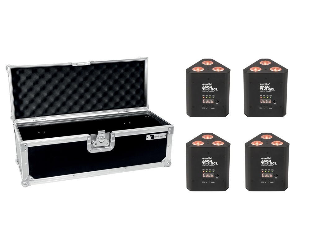 Her er du: Disconetto » LYS » Lamper og Belysning » LED Accu/Batteri Lamper » LED Accu Sæt Eurolite sæt: 4 x AKKU TL-3 QCL RGB+UV Trusslight + Case Ikke på lager Forventet levering om ukendt antal uger Bedømmelse for Eurolite sæt: 4 x AKKU TL-3 QCL RGB+UV Trusslight + CaseProduktet er endnu ikke bedømt 7.169,00DKK ved 1 stk. Vis uden moms Trustpilot EUROLITE Set 4x AKKU TL-3 QCL RGB+UV Trusslight + Case Dette sæt bestående af: 4 x EUROLITE AKKU TL-3 QCL RGB+UV Trusslight 1 x ROADINGER Flightcase 4x AKKU TL-3 TCL Trusslight EUROLITE AKKU TL-3 QCL RGB+UV TrusslightBattery-powered trusslight with RGB+UV LEDs and IR remote controlCompact and brightCordless and versatile3 high-power 4 W RGB+UV LEDs (4in1)Ideal for booth construction, stages and anywhere trussing is usedIdeal for ALUTRUSS DECOLOCK DQ3 3-point systemBattery operation up to 10 hoursEnergy saving modeAuto, music, master/slave and DMX modeSound-control via built-in microphone with adjustable microphone sensitivitySupports QuickDMX - the wireless DMX system from EuroliteBuilt-in phantom-powered USB port for QuickDMX receivers (accessory)Built-in auto and music show programsDirect color selection for 20 preset colorsColor temperature 10-step adjustable from 2700-8000 KStepless RGB/UV color mixture, color change, color fade, dimmer, strobe effect with variable speed, sound control, white balanceAddressing and setting via control panel with 4-digit LED displayConvenient wireless control via included IR remote control EUROLITE IR-7Threaded inserts for suspended installationAdditional rubber feet protect the device when positioned on the floorIEC terminals for power linking up to 8 unitsSwitch-mode power supply for operation between 100 and 240 voltsLED: 3 x high-power 4 W 4in1 QCL RGB/UV (homogenous color mix)Can be operated in 2; 4; 5; 6; 9 CH modeThe device is cooled by passive convectionControlling by Stand-alone; DMX; IR remote control; QuickDMX via USB (optional); Sound to light via Microphone; Master/slave functionFlicker-free projectionROADINGER Flightcase 4x AKKU TL-3 TCL TrusslightPRO flightcase for 4 x AKKU TL-3 TCL TrusslightInterior seperated in four compartments, for four AKKU TL-3 TCL TrusslightAdditional accessory compartmentHigh-quality workmanship with wood, dark brown laminatedAluminum profile frames (25 mm) with rounded edgesInterior upholstered with foamThree-leg, small-sized steel ball corners2 hingesHigh-quality butterfly lockCase handleMade in Europe Weight:13,90 kgEUROLITE AKKU TL-3 QCL RGB+UV TrusslightPower supply:100-240 V AC, 50/60 HzIP classification:IP20Protection class:Class IIIPower connection:Battery/battery pack built-inMains input IEC connector (M) mounting version Power supply cord with safety plug (provided)Power output:IEC connector (F) mounting versionFuse:F 1 A Fuse replaceableBattery pack type:1 x lithium ion 11,1 V, 2200 mAh, 24,42 WhBattery pack:Battery operation up to 8h depending on program usedRecharging time 2,5hLamp type:LED lampLED:3 x high-power 4 W 4in1 QCL RGB/UV (homogenous color mix)Flash rate:0 - 20 HzDMX channels:2; 4; 5; 6; 9DMX input:3-pin XLR (M) mounting versionDMX output:3-pin XLR (F) mounting versionCooling:Passive convectionControl:Stand-alone; DMX; IR remote control; QuickDMX via USB (optional); Sound to light via Microphone; Master/slave functionBeam angle:10°Beam angle (1/2 peak):10°Beam angle (1/10 peak):33°Housing color:BlackDimensions:Width: 12,22 cmDepth: 10,8 cmHeight: 14,3 cmWeight:1,3 kgNoise classification:Class 0 (no noise at all); Class 0 (no noise at all)Remote controlBattery:1 x Button cell 3.0 V CR2025 lithium manganese built-inLegal specificationsSpecial product:Not designed for household room illuminationintended use:show effect lightingROADINGER Flightcase 4x AKKU TL-3 TCL TrusslightMaximum load:25 kgMaterial:Birch multiplex, 7 mmColor:Dark brown, laminatedDimensions:Width: 47,5 cmDepth: 24,5 cmHeight: 21,5 cmWeight:4,50 kg Varenr.: E-20000853