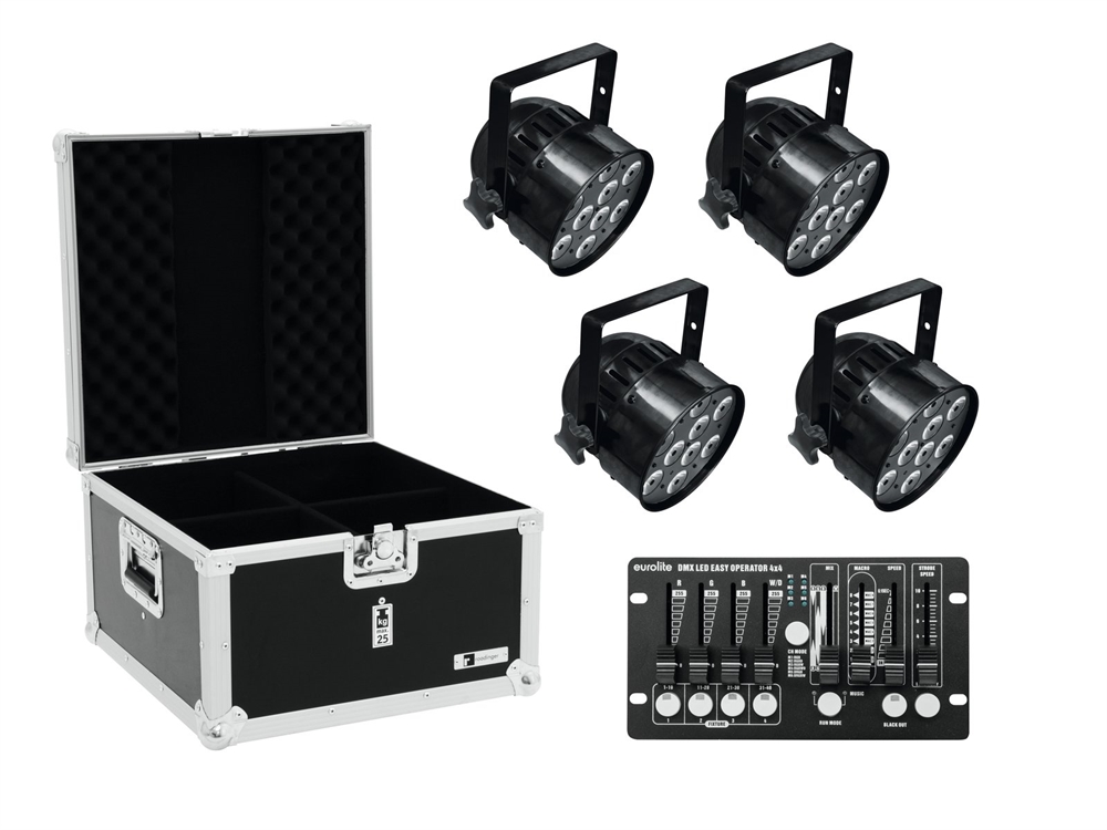 Her er du: Disconetto » LYS » Lamper og Belysning » Indendørs LED Lamper » LED Lamper i sæt Eurolite sæt: 4 x LED PAR-56 QCL bk + Case + Controller På lager På lager, 3-5 hverdage Bedømmelse for Eurolite sæt: 4 x LED PAR-56 QCL bk + Case + ControllerProduktet er endnu ikke bedømt 7.689,00DKK ved 1 stk. Vis uden moms Trustpilot 4x PAR-56 Spot with 9 x 8 W 4in1 LED inkcluding flightcase and compact DMX controller EUROLITE Set 4x LED PAR-56 QCL bk + Case + Controller Dette sæt bestående af: 4 x EUROLITE LED PAR-56 QCL Short bk 1 x ROADINGER Flightcase EPS-56 4x PAR-56 Spot short 1 x EUROLITE DMX LED EASY Operator 4x4 4x PAR-56 Spot with 9 x 8 W 4in1 LED inkcluding flightcase and compact DMX controllerEUROLITE LED PAR-56 QCL Short bkPAR-56 spot with 9 x 8 W 4in1 LED and RGBW color mixingOperable in stand-alone mode or via DMXAdjustable microphone sensitivity via control boardFunctions: Static colors, RGBW color mixture, auto mode, internal programs, dimmer and strobe settings via DMX, Master/SlaveEquipped with 9 x 8 W 4in1 LED in red, green, blue and whiteLocking possibility at the mounting bracketComfortable addressing and setting via control board with LED display and four operating buttonsAdditional controlling possibility via the EUROLITE IR-7 remote control, included in deliverySwitch-mode power supply for operation between 100 and 240 voltsReady for connection via included IEC power cord with safety power plugSilver or black housing availableLED: 9 x high-power 8 W 4in1 QCL RGBW (homogenous color mix)Can be operated in 4; 6; 8 CH modeControlling by Stand-alone; DMX; IR remote control; Sound to light via MicrophoneIs in Light J Software; EUROLITE LED PC-Control 512 software; EASY SHOW; LED EASY OPERATOR 4x4; LED EASY OPERATOR 4x6; LED EASY OPERATOR DELUXE already preprogrammedFlicker-free projectionEffect: Strobe effectROADINGER Flightcase EPS-56 4x PAR-56 Spot shortPractical flightcase for PAR-56 spotsCompartments for four PAR-56 spotsHigh-quality workmanship with multiplex birch wood, dark brown laminatedAluminum profile frames (30 mm) with rounded edgesInterior upholstered with foamThree-leg, medium-sized steel ball corners2 hinges1 butterfly lock2 case handlesSuitable e.g. for items 42000800, 42000802, 42000810, 42000812, 51913612, 51913613, 51913618, 51913619, 51913620, 51913625, 51913624, 51913628, 31000700, 42000410, 42000420, 42000825, 42000826, 51913618, 51913619EUROLITE DMX LED EASY Operator 4x4Compact DMX controller for 4 LED spotlights with up to 4 colors eachDMX controller for standard LED spotlightsEasy operation4 fixtures with RGBW LEDs can be controlled individually or in combinationDMX channels for red, green, blue, white and masterVarious modes for the DMX channel sequence selectableManual control via 4 faders1 fader for direct RGBW mixing8 automatic programs with adjustable speed Adjustable strobe functionBlackout functionCompact desktop consoleCan transmit up to 20 DMX channelsControlling by DMX; Sound to light via MicrophoneDesktop console housing Weight:16,62 kgEUROLITE LED PAR-56 QCL Short bkPower supply:100-240 V AC, 50/60 HzPower consumption:50 WIP classification:IP20Power connection:Mains input IEC connector (M) mounting version Power supply cord with safety plug (provided)Lamp type:LED lampLED:9 x high-power 8 W 4in1 QCL RGBW (homogenous color mix)DMX channels:4; 6; 8DMX input:3-pin XLR (M) mounting versionDMX output:3-pin XLR (F) mounting versionControl:Stand-alone; DMX; IR remote control; Sound to light via Microphone; Light J Software; EUROLITE LED PC-Control 512 software; EASY SHOW; LED EASY OPERATOR 4x4; LED EASY OPERATOR 4x6; LED EASY OPERATOR DELUXEBeam angle:8°Beam angle (1/2 peak):8°Beam angle (1/10 peak):25°Housing color:BlackDisplay type:4 digits 7-segment LED displayDimensions:Width: 20,5 cmDepth: 17,5 cmHeight: 23 cmWeight:1,76 kgRemote controlBattery:1 x Button cell 3.0 V CR2025 lithium manganese built-inLegal specificationsSpecial product:Not designed for household room illuminationintended use:show effect lightingROADINGER Flightcase EPS-56 4x PAR-56 Spot shortMaximum load:25 kgMaterial:Birch multiplex, 7 mmColor:Dark brown, laminatedCompartment dimensions:21,5 cm x 21,5 cm x 24 cmInside dimensions:44,5 cm x 44,5 cm x 24 cmDimensions:Width: 48,5 cmDepth: 48,5 cmHeight: 31 cmWeight:8,70 kgEUROLITE DMX LED EASY Operator 4x4Power supply:100-240 V AC, 50/60 Hz9 V DC 800 mAPower consumption:10 WIP classification:IP20Protection class:Class IIIPower connection:Mains input Coaxial power connector (M) Power supply cord with AC adapter (provided)DMX channels:Output 20DMX output:1 x 3-pin XLR (F) mounting versionControl:DMX; Sound to light via MicrophoneHousing color:BlackColor:BlackHousing design:Desktop console housingDimensions:Width: 20 cmDepth: 11,5 cmHeight: 5,5 cmWeight:860 g Varenr.: E-20000413