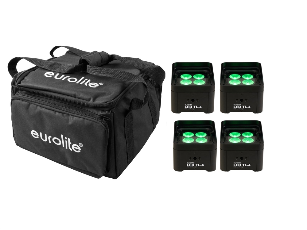 Her er du: Disconetto » LYS » Lamper og Belysning » Indendørs LED Lamper » LED Lamper i sæt Eurolite sæt: 4 x LED TL-4 Trusslight + Softbag På lager På lager, 3-5 hverdage Bedømmelse for Eurolite sæt: 4 x LED TL-4 Trusslight + SoftbagProduktet er endnu ikke bedømt 4.879,00DKK ved 1 stk. Vis uden moms Trustpilot 4x variable truss light and uplight with bright 4 x 8 W RGB+UV LED incl. soft bag EUROLITE Set 4x LED TL-4 Trusslight + Softbag Dette sæt bestående af: 4 x EUROLITE LED TL-4 QCL RGB+UV Trusslight 1 x EUROLITE SB-4 Soft Bag L 4x variable truss light and uplight with bright 4 x 8 W RGB+UV LED incl. soft bagEUROLITE LED TL-4 QCL RGB+UV TrusslightVariable truss light and uplight with bright 4 x 8 W RGB+UV LEDCompact and bright, making it perfect for truss installationEquipped with 4 x 8 W 4in1 LED in the colors red, green, blue and UVDMX-controlled operation or stand-alone operation with Master/Slave functionBuilt-in auto and music show programsDirect color selection for 18 preset colorsFunctions: static colors, stepless RGB+UV color mixture, internal programs, dimmer, strobe effect with variable speed, Master/Slave operationFlicker-free projectionSupports QuickDMX - the wireless DMX system from EuroliteBuilt-in phantom-powered USB port for QuickDMX receivers (accessories)DMX control via any standard DMX controllerAddressing via control panel with 4-digit LED displayConvenient wireless control via included IR remote control EUROLITE IR-7Ideal for booth construction, stages and anywhere trussing is usedPerfect for ALUTRUSS 4-POINT SYSTEM QUADLOCKHanging as well as standing installation possibleM10 threaded insert for suspended installationFolding foot adjustable in 5 steps for flexible placementAdditional rubber feet when the spot shall be positioned on the floorIEC terminals for power linking up to 8 unitsSwitch-mode power supply for operation between 100 and 240 voltsLED: 4 x high-power 8 W 4in1 QCL RGB/UV (homogenous color mix)Can be operated in 3; 4; 4; 8 CH modeThe device is cooled by passive convectionControlling by DMX; QuickDMX via USB (optional); Sound to light via Microphone; IR remote control includedIs in Light J Software; EUROLITE LED PC-Control 512 software; EASY SHOW; LED EASY OPERATOR DELUXE already preprogrammedEUROLITE SB-4 Soft Bag LBlack soft bag for up to 4 devices, 320 x 320 x 200 mmPractical transport bag offers enough space for several lighting effects and accessoriesLarge interior, four times divisible and adaptable with foam dividers and padsSuitable e.g. for 4 x AKKU UP-4 Spot, 4 x TL-3 TCL Trusslight (41700500) or 3 x AKKU UP-4 Spot QuickDMX (41700540)Interior upholstery helps securing and safeguarding the fixtures during transportationExternal pocket stores accessories like cables, clamps, lamps and tapeMade of easy-care nylonCarrying handles Weight:6,75 kgEUROLITE LED TL-4 QCL RGB+UV TrusslightPower supply:100-240 V AC, 50/60 HzPower consumption:15 WIP classification:IP20LED:4 x high-power 8 W 4in1 QCL RGB/UV (homogenous color mix)Flash rate:0 - 20 HzDMX channels:3; 4; 4; 8DMX input:1 x USB, type A1 x 3-pin XLR (M) mounting versionDMX output:1 x 3-pin XLR (F) mounting versionCooling:Passive convectionControl:DMX; QuickDMX via USB (optional); Sound to light via Microphone; IR remote control included; Light J Software; EUROLITE LED PC-Control 512 software; EASY SHOW; LED EASY OPERATOR DELUXEBeam angle:13°Beam angle (1/2 peak):13°Beam angle (1/10 peak):30°Housing color:BlackDimensions:Length: 15,5 cmWidth: 14,5 cmHeight: 13,0 cmWeight:1,56 kgNoise classification:Class 0 (no noise at all)Legal specificationsSpecial product:Not designed for household room illuminationintended use:show effect lightingEUROLITE SB-4 Soft Bag LMaximum load:25 kgMaterial:TextileColor:BlackCompartment dimensions:15 cm x 15 cm x 19 cmInside dimensions:31 cm x 31 cm x 19 cmDimensions:Width: 32 cmDepth: 32 cmHeight: 20 cmWeight:520 g Varenr.: E-20000636