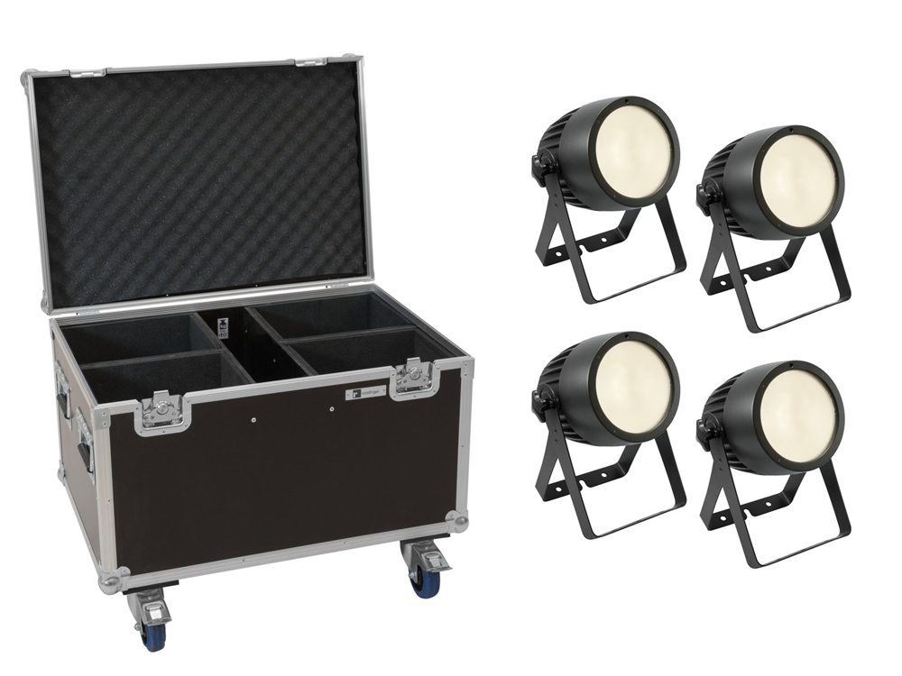 Her er du: Disconetto » LYS » Teaterspots » Fresnel lampe Eurolite sæt: 4 x LED Theatre COB 200 WW + Case with wheels På lager På lager, 3-5 hverdage Bedømmelse for Eurolite sæt: 4 x LED Theatre COB 200 WW + Case with wheelsProduktet er endnu ikke bedømt 18.979,00DKK ved 1 stk. Vis uden moms Trustpilot EUROLITE Set 4x LED Theatre COB 200 WW + Case with wheelsDenne vare kan KUN sendes kun med fragtmand Dette sæt bestående af: 4 x EUROLITE LED Theatre COB 200 WW 1 x ROADINGER Flightcase 4x LED Theatre COB 200 series, with wheels EUROLITE LED Theatre COB 200 WWLED theatre spot with warm white 200 W COB LEDIdeal as white light in theaters, on concert stages and many other places where good, white light is needed1 high-power warm white 200 W COB LEDAuto, music, master/slave and DMX modeBuilt-in auto and music show programsDimmer and strobe effectAddressing via control panel with LCD and four operating buttonsConvenient wireless control via included IR remote control EUROLITE IR-7Sound-control via built-in microphone with adjustable microphone sensitivitySupports QuickDMX - the wireless DMX system from EuroliteBuilt-in phantom-powered USB port for QuickDMX receivers (accessories)1, 2 or 4 DMX channels selectableSwivel mounting bracketAdditional bracket for floor useSwitch-mode power supply for operation between 100 and 240 voltsP-Con terminals for power linking up to 8 unitsVery high color rendering index (CRI >90)LED: 1 x COB (chip-on-board) 200 W warm white (WW)Can be operated in 1; 2; 4 CH modeThe device is cooled by cooling fanControlling by Stand-alone; IR remote control; DMX; QuickDMX via USB (optional); Master/slave function; Sound to light via MicrophoneIs in Light J Software already preprogrammedFlicker-free projectionROADINGER Flightcase 4x LED Theatre COB 200 series, with wheelsTransport aid: With wheelsMade in Europe Weight:40,00 kgEUROLITE LED Theatre COB 200 WWPower supply:100-240 V AC, 50/60 HzPower consumption:150 WIP classification:IP20Protection class:Class IPower connection:Mains input P-Con (blue), mounting version Power supply cord with safety plug (provided)Power output:P-Con (gray), mounting versionLamp type:LED lampLED:1 x COB (chip-on-board) 200 W warm white (WW)Color temperature:3200KFlash rate:0 - 20 HzDMX channels:1; 2; 4DMX input:3-pin XLR (M) mounting versionDMX output:3-pin XLR (F) mounting versionCooling:Cooling fanControl:Stand-alone; IR remote control; DMX; QuickDMX via USB (optional); Master/slave function; Sound to light via Microphone; Light J SoftwareColor rendering index (CRI) more than:95 RaBeam angle:17°Beam angle (1/2 peak):17°Beam angle (1/10 peak):35°Housing color:BlackDisplay type:LCD displayDimensions:Width: 25,95 cmDepth: 20,00 cmHeight: 37,65 cmWeight:4,11 kgNoise classification:Class 1 (very slight noise, suitable for noise-sensitiveenvironments)Remote controlBattery:1 x Button cell 3.0 V CR2025 lithium manganese (provided)Legal specificationsSpecial product:Not designed for household room illuminationintended use:show effect lightingROADINGER Flightcase 4x LED Theatre COB 200 series, with wheelsMaximum load:100 kgMaterial:Birch multiplex, 6,5 mmAccessory compartment:10,3 cm x 46,8 cm x 35,5 cmDimensions:Length: 73,5 cmDepth: 51 cmHeight: 57 cmWeight:19,40 kg Varenr.: E-20000874