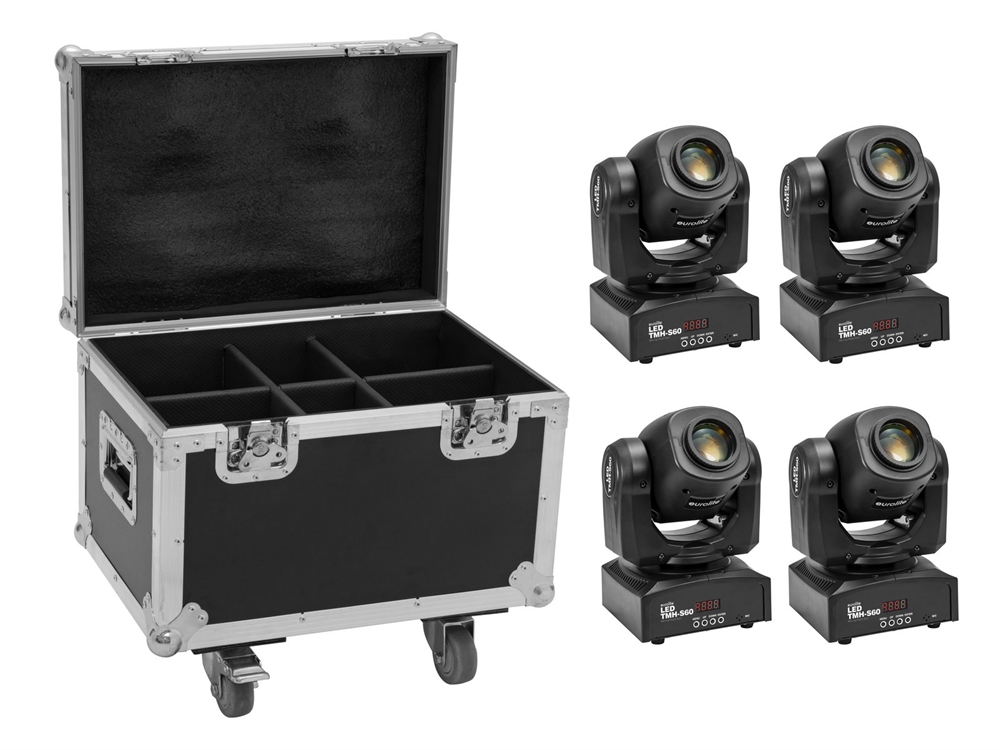 Her er du: Disconetto » LYS » Scanner og Movinghead » Movinghead SPOT Eurolite sæt: 4 x LED TMH-S60 Moving-Head-Spot + Case På lager På lager, 3-5 hverdage Bedømmelse for Eurolite sæt: 4 x LED TMH-S60 Moving-Head-Spot + CaseProduktet er endnu ikke bedømt 17.439,00DKK ved 1 stk. Vis uden moms Trustpilot EUROLITE Set 4x LED TMH-S60 Moving-Head-Spot + Case Dette sæt bestående af: 4 x EUROLITE LED TMH-S60 Moving Head Spot 1 x ROADINGER Flightcase 4x LED TMH-13/17/S30/W36 Positioning within PAN and TILTEUROLITE LED TMH-S60 Moving Head SpotCompact Moving Head Spot with 60 W LED, gobos and color wheel3 gobos with heart patterns for exchange includedElectronic dimmer1 powerful LED 60 W COB (chip-on-board) cold white (CW)Positioning within 540° PAN and 180° TILTColor wheel with 7 dichroic filters plus openRainbow effect with adjustable speed in both directionsGobo wheel with rotating gobos, 7 gobos and openSlot-in gobo system for easy gobo replacementShake effect4 integrated ShowprogramsCan be operated in 10; 12 CH modeThe device is cooled by cooling fanControlling by stand-alone; DMX; Sound to light via Microphone; Master/slave function; CRMX by LumenRadio via USB (optional); W-DMX by wireless solution via USB (optional); QuickDMX via USB (optional)Preprogrammed in LED PC-Control 512; EASY SHOW 1; Light CaptainFlicker-freeEffect: Single Beam; Strobe effectWith a beam angle of 12°4 digits 7-segment LED displayPackage contents1 x moving light, 1 x user manual, 1 x power cord, 1 x omega bracket, 1 x safety eyelet, 3 x gobosROADINGER Flightcase 4x LED TMH-13/17/S30/W36Flightcase for 4x LED TMH-13/17/S30/W36High-quality workmanship with plywood glued 7 mm, black, laminatedCastors Weight:27,60 kgEUROLITE LED TMH-S60 Moving Head SpotPower supply:100-240 V AC, 50/60 HzPower consumption:95 WIP classification:IP20Protection class:Class IPower connection:Mains input via P-Con (blue), mounting version power supply cord with safety plug (provided)Device fuse:5 x 20 mm, T 1,5 A Fuse replaceableLamp type:LED lampLED:1 x 60 W COB (chip-on-board) cold white (CW)Color temperature:7700KMax. TILT movement:180°Max. PAN movement:540°Equipment:Gobo wheel with rotating gobos; Focus manual; color wheelColor generation:Color wheel with 7 dichroic filters plus openGobos:Gobo wheel with rotating gobos, 7 gobos and openOutside diameter 13,8mmImage diameter 11mmSlot-in gobo system for easy gobo replacementShake effectDMX channels:10; 12DMX input:3-pin XLR (M) mounting versionDMX output:3-pin XLR (F) mounting versionCooling:Cooling fanControl:Stand-alone; DMX; Sound to light via Microphone; Master/slave function; LED PC-Control 512; EASY SHOW 1; CRMX by LumenRadio via USB (optional); W-DMX by wireless solution via USB (optional); QuickDMX via USB (optional); Light CaptainBeam angle:12°Beam angle (1/2 peak):12°Illuminance in Lux (lx):Cold white (CW) 1m: 15205 lx, 3m: 1764 lx, 6m: 445 lxHousing color:BlackDisplay type:4 digits 7-segment LED displayDimensions:Width: 17,0 cmDepth: 15,0 cmHeight: 24,0 cmWeight:3,15 kgLegal specificationsSpecial product:Not designed for household room illuminationIntended use:Show effect lightingROADINGER Flightcase 4x LED TMH-13/17/S30/W36Maximum load:50 kgTransport aid:CastorsMaterial:Plywood glued, 7 mmColor:Black, laminatedDevice compartment:18 cm x 15,5 cm x 27 cmDimensions:Width: 55 cmDepth: 38 cmHeight: 47 cmWeight:12,90 kg Varenr.: E-20000955