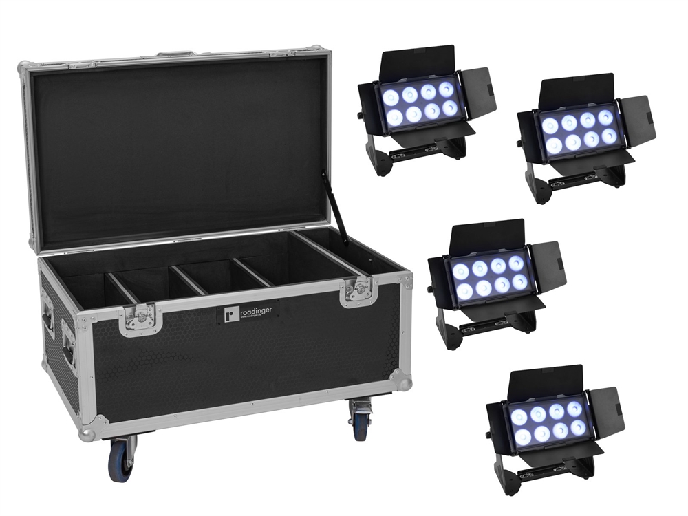 Her er du: Disconetto » brand » Eurolite Eurolite sæt: 4 x Multiflood IP 8x10W RGBW Wash CRMX + Case På lager På lager, 3-5 hverdage Bedømmelse for Eurolite sæt: 4 x Multiflood IP 8x10W RGBW Wash CRMX + CaseProduktet er endnu ikke bedømt 24.619,00DKK ved 1 stk. Vis uden moms Trustpilot EUROLITE Set 4x Multiflood IP 8x10W RGBW Wash CRMX + CaseDenne vare kan KUN sendes kun med fragtmand Set consisting of:: 4 x EUROLITE Multiflood IP 8x10W RGBW Wash CRMX 1 x ROADINGER Flightcase 4x Multiflood IP 8x10W RGBW Wash EUROLITE Multiflood IP 8x10W RGBW Wash CRMXSilent IP65 LED floodlight with RGBW color mixing, CRMX, diffuser cover, barn doors, IR remote controlIntegrated wireless receiver for CRMX operationSilent operationControl via DMX; W-DMX by wireless solution; CRMX by LumenRadio; Master/slave function; RDM; stand-alone; IR remote controlAdditional frost filter provides a wide, soft and homogeneous light4 barn doors to avoid blinding the audience and for protection during transport8 powerful LEDs 10 W high-power 4in1 QCL RGBW (homogenous color mix)3 buttons on the remote control for saving your own settingsColor blend stepless; color change adjustable; color fade adjustable; Dimmer electronic; Dimmer speed (step response) with adjustable response; white balance36 integrated show programsStrobe effectFlicker-freeWith a beam angle of 10°With Mounting bracket; with Omega bracketOLED displayMains input and output for power linking up to 8 unitsSuitable for outdoor useWith pressure compensation membraneWith a KENSINGTON LOCK theft protectionFor application areas such as: Stage; architecture; mobile use; RentalPreprogrammed in Light Captain; LED PC-Control 512; Light´JThe device is cooled by passive convection coolingApplication possibility: Suspended; on stand; standingPackage contents1 x device, 1 x user manual, 1 x power cord, 1 x remote control, 1 x diffusor cover, 1 x omega bracket, 1 x barndoor, 1 x batteryROADINGER Flightcase 4x Multiflood IP 8x10W RGBW WashTrunk case with castorsInterior with foam paddingAluminum profile frames 35mm with rounded edges4 hinged, chromium plated case handlesEdge mounting handle3 chrome tip-over locks2 high-quality butterfly locks2 castors with 2 locking brakes4 built-in stacking trays in the cover Weight:54,30 kgEUROLITE Multiflood IP 8x10W RGBW Wash CRMXPower supply:100-240 V AC, 50/60 HzPower consumption:80 WIP classification:IP65Protection class:Protection class IPower connection:Mains input via IP T-Con (M) mounting version power supply cord with safety plugPower output:1 x IP T-Con (F) mounting versionLamp type:LED lampLED:8 x 10 W high-power 4in1 QCL RGBW (homogenous color mix)Flash rate:1 - 23 HzDMX channels:3; 4; 6; 8; 11DMX input:1 x 3-pin XLR (M) mounting version IPDMX output:1 x 3-pin XLR (F) mounting version IPCooling:Passive convection coolingControl:DMX; W-DMX by wireless solution; CRMX by LumenRadio; Master/slave function; RDM; stand-alone; IR remote controlPreprogrammed in:Light Captain; LED PC-Control 512; Light´JCarrier frequency:2,4 GHzBeam angle:10°Beam angle (1/2 peak):10°Frost filter 25°Beam angle (1/10 peak):25°Frost filter 55°Housing color:BlackAttachment system:Mounting bracketOmega bracketDisplay type:OLED displayTheft protection:KENSINGTON LOCKDimensions:Length: 31,9 cmWidth: 14 cmHeight: 24,8 cmWeight:6,10 kgNoise classification:Class 0 (no noise at all)Remote controlBattery:1 x Button cell 3.0 V CR2032 lithium manganese built-inLegal specificationsSpecial product:Not designed for household room illuminationIntended use:Show effect lightingROADINGER Flightcase 4x Multiflood IP 8x10W RGBW WashAluminum profile frames:35 mmCase handle:4 pc/pcsEdge mounting handle:1 pc/pcsStop hinge:3 pc/pcsLock:Butterfly lock: 2 pc/pcsTransport aid:2 x castors with 2 locking brakes4 x built-in stacking trays in the coverColor:Black, laminatedDevice compartment:15 cm x 46 cm x 30 cmAccessory compartment:8,5 cm x 46 cm x 30 cmMaterial thickness:9 mmDimensions:Width: 87,5 cmDepth: 53 cmHeight: 55,5 cmWeight:25,75 kg Varenr.: E-20001001