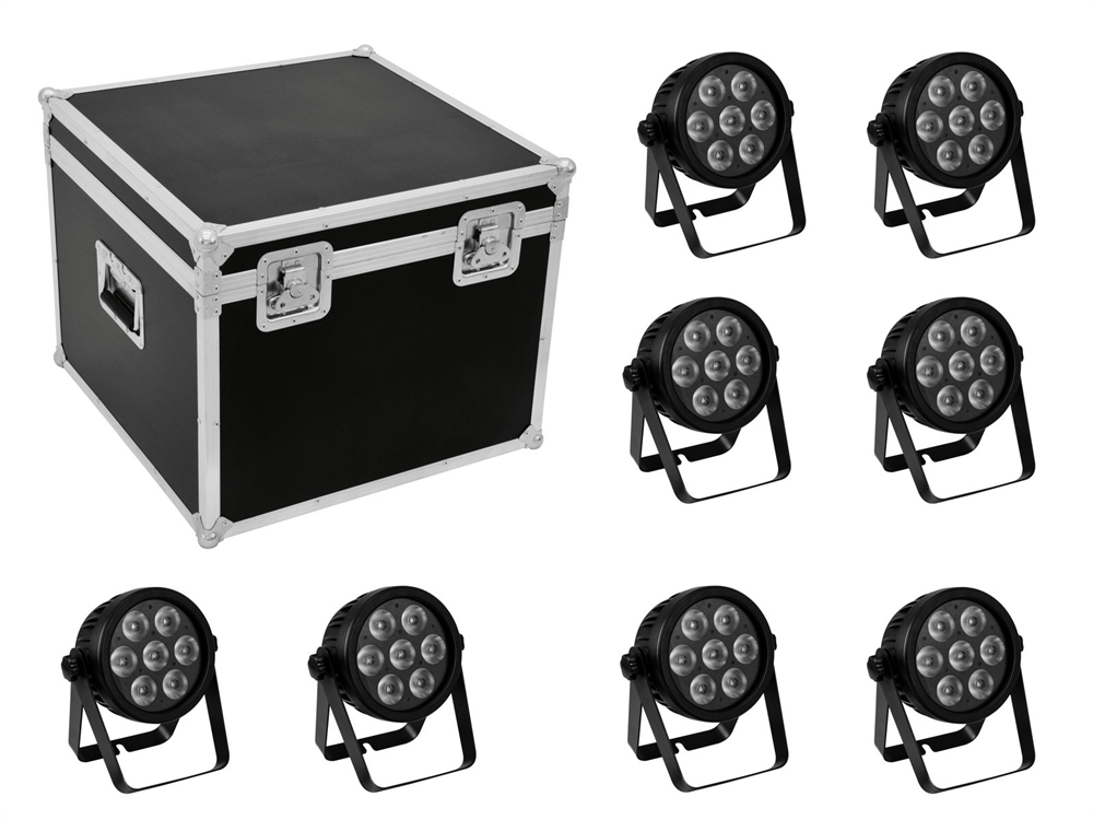 Her er du: Disconetto » LYS » Lamper og Belysning » Indendørs LED Lamper » LED Lamper i sæt Eurolite sæt: 8x LED 7C-7 Silent Slim Spot + Case På lager På lager, 3-5 hverdage Bedømmelse for Eurolite sæt: 8x LED 7C-7 Silent Slim Spot + CaseProduktet er endnu ikke bedømt 21.029,00DKK ved 1 stk. Vis uden moms Trustpilot 8x inaudible 7in1 PAR spotlight in a space-saving design including PRO flightcase EUROLITE Set 8x LED 7C-7 Silent Slim Spot + CaseDenne vare kan KUN sendes kun med fragtmand Dette sæt bestående af: 8 x EUROLITE LED 7C-7 Silent Slim Spot 1 x ROADINGER Flightcase 8x SLS Size M 8x inaudible 7in1 PAR spotlight in a space-saving design including PRO flightcaseEUROLITE LED 7C-7 Silent Slim SpotSilent 7in1 LED PAR spotlight in a space-saving design7 high power 9 W RGBA/CW/WW+UV LEDs (7in1)Silent operationBuilt-in auto and music show programsDirect color selection for 27 preset colorsColor temperature adjustable in 6 steps (2700-8000 K)RGBA/CW/WW+UV color blend, dimmer and strobe settingsAddressing and setting via control panel with 4-digit LED displayConvenient wireless control via included IR remote control EUROLITE IR-7Supports QuickDMX - the wireless DMX system from EuroliteBuilt-in phantom-powered USB port for QuickDMX receivers (accessories)Flat housing form requires minimal space when riggingSwivel mounting bracketAdditional bracket for floor useP-Con terminals for power linking up to 8 unitsLED: 7 x high-power 9 W 7in1 SCL RGB/CW/WW/A/UV (homogenous color mix)Can be operated in 3; 5; 7; 9; 12 CH modeThe device is cooled by passive convectionControlling by Stand-alone; DMX; IR remote control; Sound to light via Microphone; Master/slave functionIs in Light J Software; EUROLITE LED PC-Control 512 software; EASY SHOW already preprogrammedFlicker-free projectionEffect: Strobe effectROADINGER Flightcase 8x SLS Size MPRO flightcase for 8 x SLS spotlightCompartments for eight SLS spotsIndividually adjustable and removable dividers for universal useAluminum profile frames (30 mm) with rounded edgesInterior upholstered with foamThree-leg, medium-sized steel ball corners2 hinges1 butterfly lock2 case handleMade in Europe Weight:36,65 kgEUROLITE LED 7C-7 Silent Slim SpotPower supply:100-240 V AC, 50/60 HzPower consumption:45 WIP classification:IP20Power connection:Mains input P-Con (blue), mounting version Power supply cord with safety plug (provided)Power output:1 x P-Con (gray), mounting versionLamp type:LED lampLED:7 x high-power 9 W 7in1 SCL RGB/CW/WW/A/UV (homogenous color mix)Flash rate:0 - 20 HzDMX channels:3; 5; 7; 9; 12DMX input:1 x 3-pin XLR (M) mounting versionDMX output:1 x 3-pin XLR (F) mounting versionCooling:Passive convectionControl:Stand-alone; DMX; IR remote control; Sound to light via Microphone; Master/slave function; Light J Software; EUROLITE LED PC-Control 512 software; EASY SHOWColor rendering index (CRI) more than:90 RaBeam angle:15°Beam angle (1/2 peak):15°Beam angle (1/10 peak):33°Housing color:BlackDisplay type:4 digits 7-segment LED displayDimensions:Width: 22 cmDepth: 11 cmHeight: 25,5 cmWeight:2,60 kgNoise classification:Class 0 (no noise at all)Remote controlBattery:1 x Button cell 3.0 V CR2025 lithium manganese built-inLegal specificationsSpecial product:Not designed for household room illuminationintended use:show effect lightingROADINGER Flightcase 8x SLS Size MMaximum load:50 kgMaterial:Birch multiplex, 7 mmColor:Dark brown, laminatedCompartment dimensions:25 cm x 11,5 cm x 39 cmDimensions:Width: 53,5 cmDepth: 53,5 cmHeight: 44,5 cmWeight:13,35 kg Varenr.: E-20000582