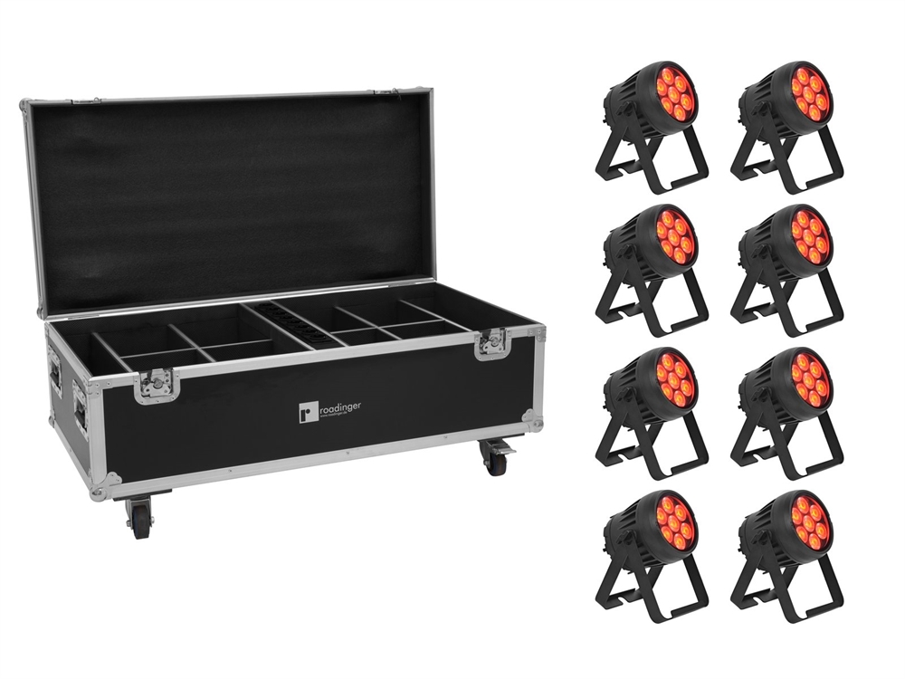 ROADINGER Flightcase 8x AKKU IP PAR 7 QCL WDMX med opladningsfunktion