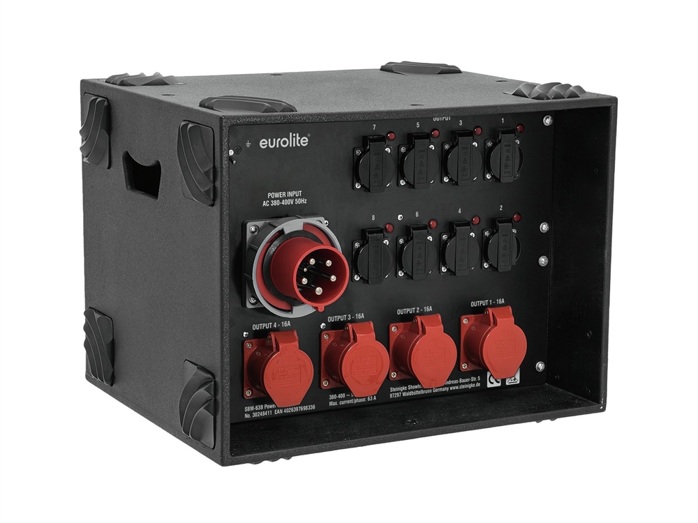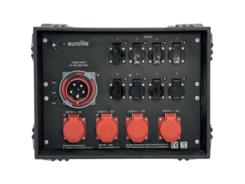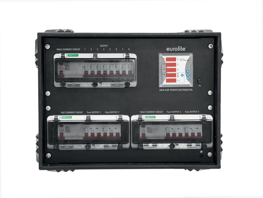 Her er du: Disconetto » KABEL & STIK » Strømfordeling » 3 fase Strøm fordeling Eurolite SBM-63B Power Distributor På lager På lager, 3-5 hverdage Bedømmelse for Eurolite SBM-63B Power DistributorProduktet er endnu ikke bedømt 10.519,00DKK ved 1 stk. Vis uden moms Trustpilot 63 A power distributor with multimeter EUROLITE SBM-63B Power Distributor 63 A power distributor with multimeter3-phase measuring of voltages from 100-380 V/ACCurrent and frequency displayRugged, stackable housing Power supply:380-400V AC, 50HzPower connection:Mains input via CEE 63A 5-pol (M) recessed mountingPower output:8 x Safety contact (F), hinged lid mounting version fused4 x CEE 16A 5-pol (F) recessed mounting fusedProtection:8 x circuit breaker C 16A 1-pol4 x circuit breaker C 16A 3-pol3 x fault-current circuit breaker (FI) Typ B 63A/0,03A 4-polDisplay:Volts , amps , frequencyDimensions:Width: 53,5 cmDepth: 42 cmHeight: 40,5 cmWeight:19,45 kg Varenr.: E-30248411