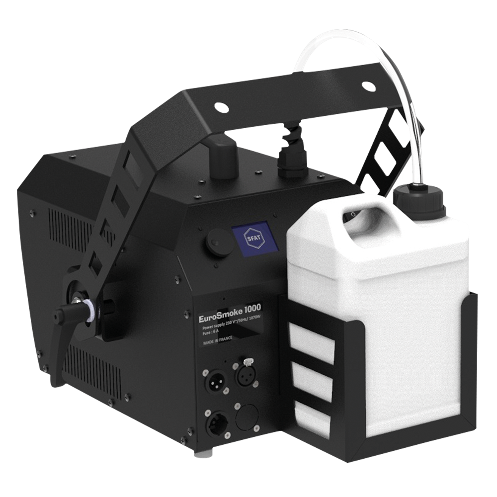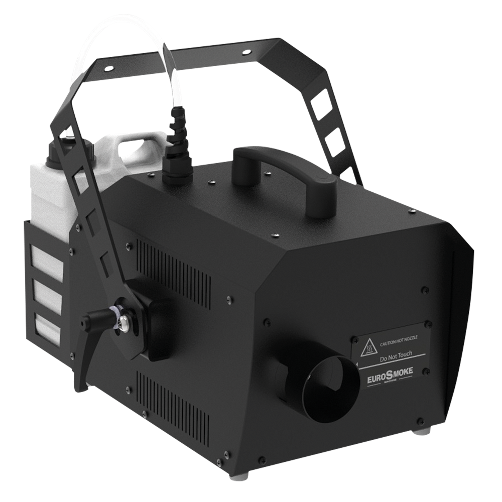 The EUROSMOKE 1000 is a high-performance smoke machine designed for professionals. It has a powerful output with smoke projection up to 10 m. The heating block is thermostat-protected for extended use without overheating. An intuitive LCD interface and a navigation wheel make the machine intuitive and easy to operate. The Eurosmoke 1000 supports multiple operation modes including manual, DMX, wireless remote, and optional Wi-Fi DMX. Its modular design allows for easy maintenance, while the robust construction ensures long-term durability. With a powerful 1000 W output, a 2-litre tank, and adjustable smoke output from 1% to 100%, this machine is built to perform under pressure.