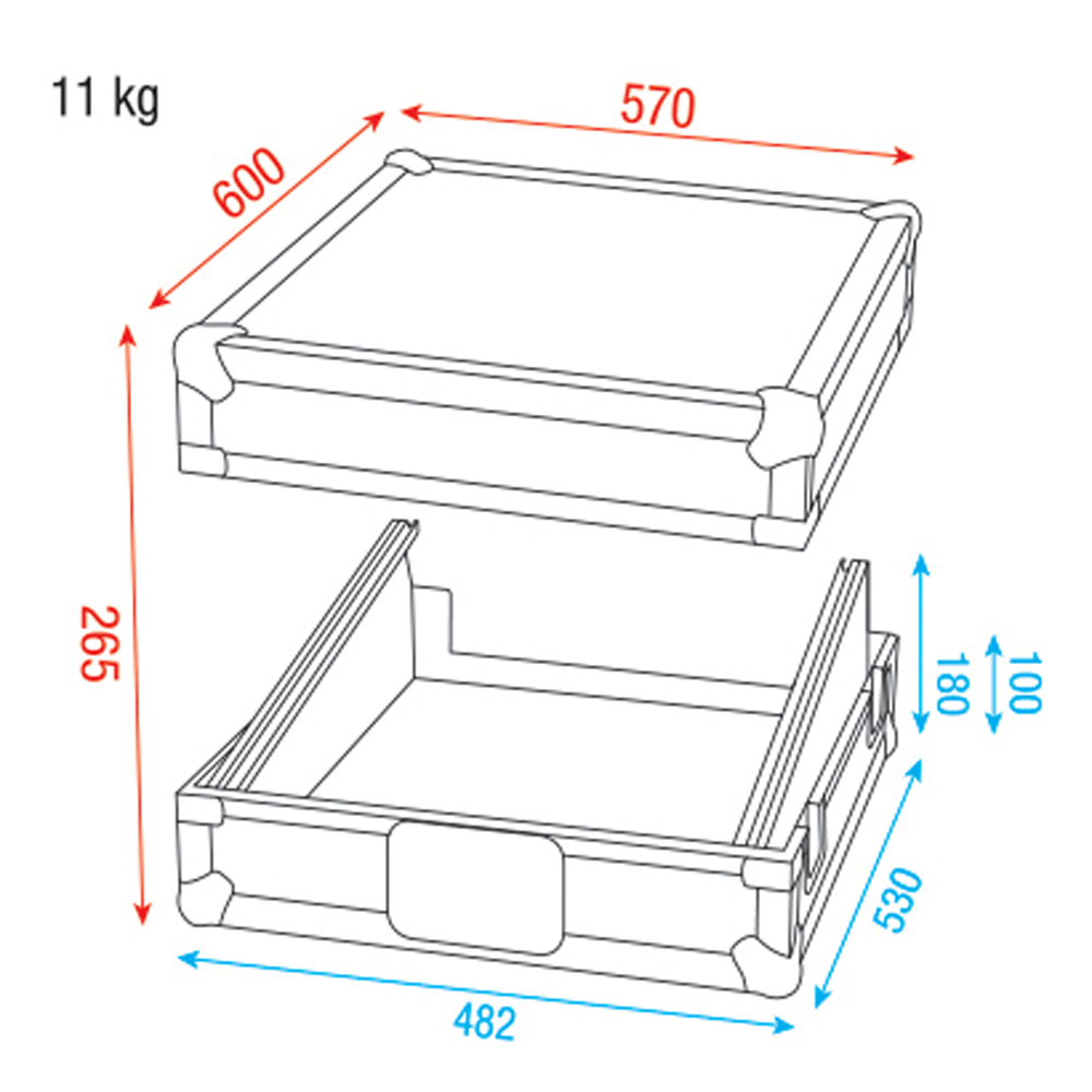 Stærk og praktisk flightcase til 19" mixer med max. 12U højde. Designet med fokus på holdbarhed og brugervenlighed – låget kan tages helt af, og åbning på bagsiden giver nem adgang til kabler og tilslutninger.