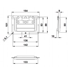 Her er du: Disconetto » Flightcase » Flightware løse dele » Håndtag Flip håndtag. Undersænket Adam Hall 34082. 100 x 155 mm. På lager Lagervare 1-2 dage Bedømmelse for Flip håndtag. Undersænket Adam Hall 34082. 100 x 155 mm.Bedømmelse: 5 ud af 5 baseret på 2 stemmer 75,50DKK ved 1 stk. Vis uden moms Trustpilot Standard størrelse flip håndtag til hulmål 80 x 133 mm. Mål H.D.B: 100x8x155mm Recessed sprung handle with full width grip and strengthened top plate in 8 mm deep steel dish. Zinc plated with black PVC grip. Product typeHandlesTypeFolding HandlesDish materialsteelDish surfacegalvanizedDish coloursilverDish height100 mmDish width155 mmDish depth8 mmRivet protection designnoHandle materialPVCHandle colourBlackMounting hole diameter5.1 mmSpring-loadedyesWeight0,348 kg Varenr.: A-34082 Kunder købte også Forstærkning til fliphåndtag For montering bag håndtag 34082 DKK 19,50 Butterfly lås lille / small DKK 49,00 Kassehængsel "løft af" DKK 21,75