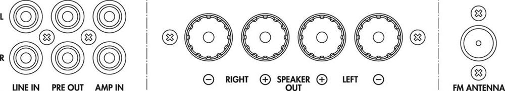 | Connections | 1 x RCA L/R (line), 1 x XLR/6.3 mm jack (mic), 1 x 3.5 mm jack (aux), 1 x RCA L/R (amp in), 1 x RCA L/R (amp out), screw terminals (speakers) |