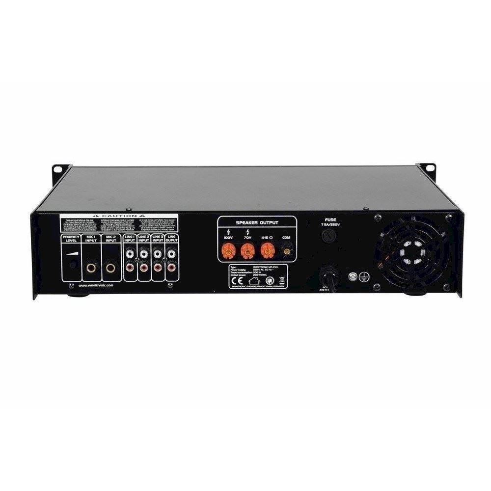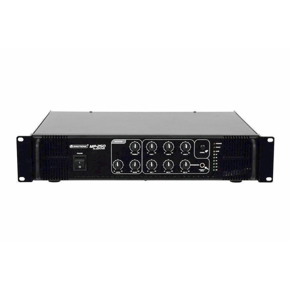 The Omnitronic MP-250 ELA mixing amplifier is your reliable partner when working with ELA sound systems. Thanks to its 19" format, it is ideally suited for both mobile and fixed installations.