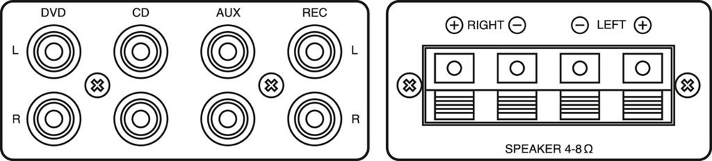 | Connections | 1 x RCA L/R (line), 1 x 6.3 mm jack (mic), 1 x RCA L/R (rec.), 4 x spring-load. speaker term. (speakers) |