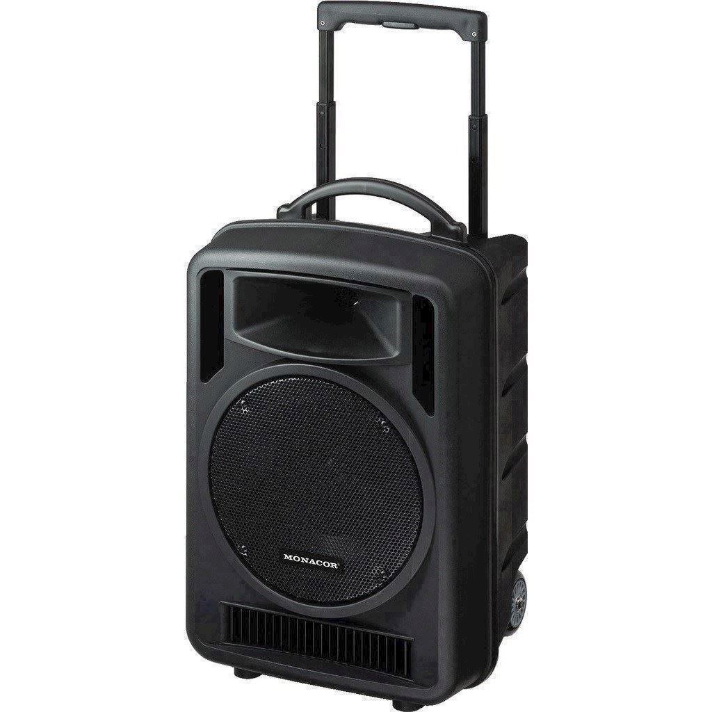 Transportabel forstærker, med indbygget justerbar 2-kanals multifrekvensmodtager med UHF PLL teknologi og Bluetooth modtager.
