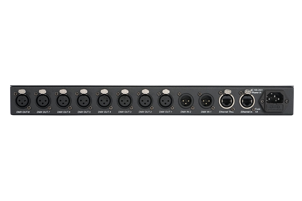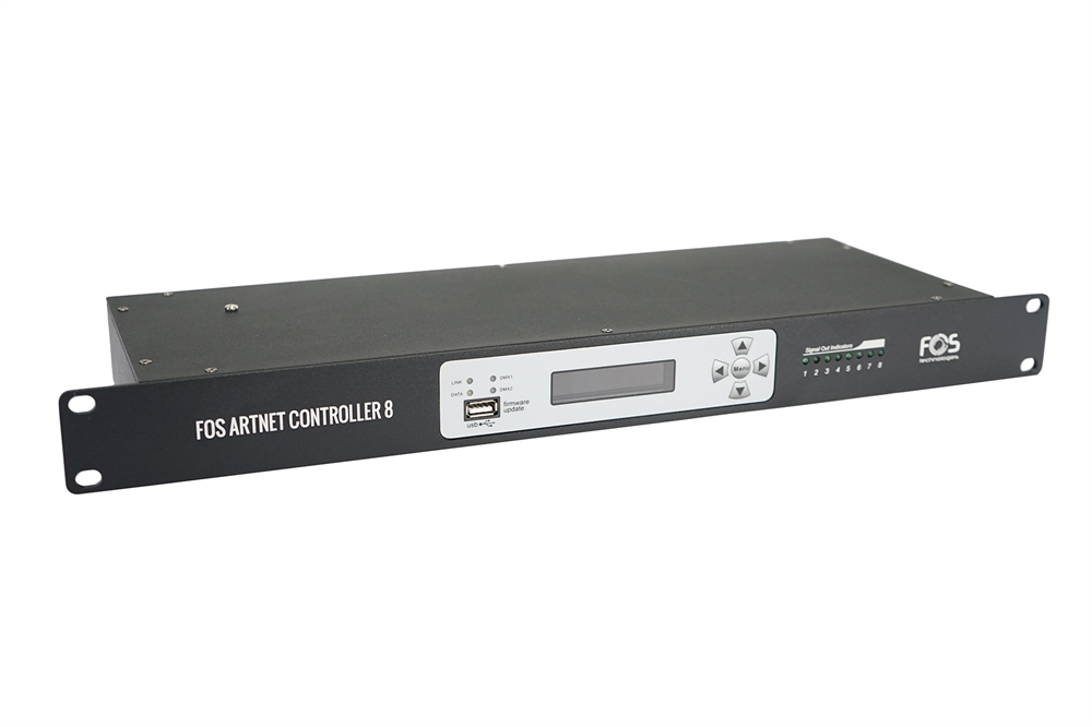 FOS ArtNet Controller8 er en pålidelig og alsidig rack-monterbar Art-Net-til-DMX interface med integreret optisk DMX-splitter og ArtNet-hub-funktionalitet.
