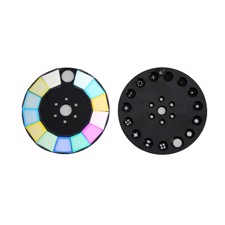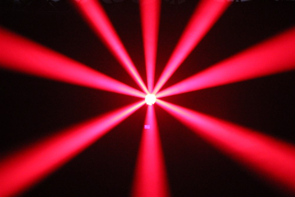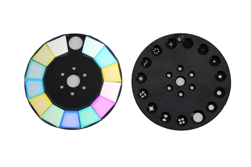 Effects Colors: Color wheel with 14 + white, single rotation rainbow effect Gobos: Gobo wheel with 14 + open gobos 8 facet rotated prism Frost function Focus 0 - 100% linear dimmer Srobe: 1-13 times/sec