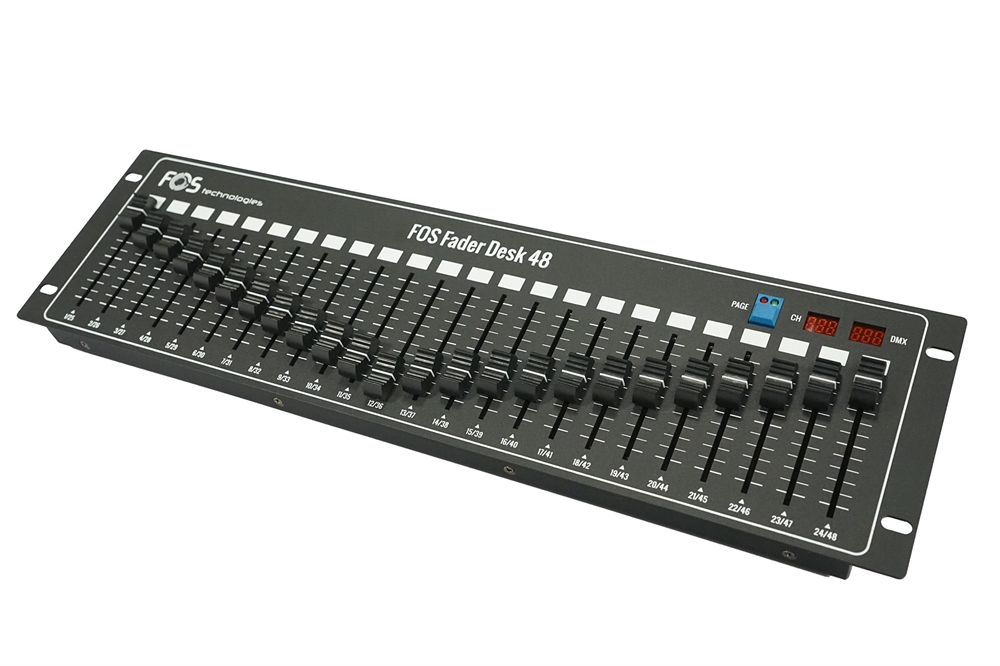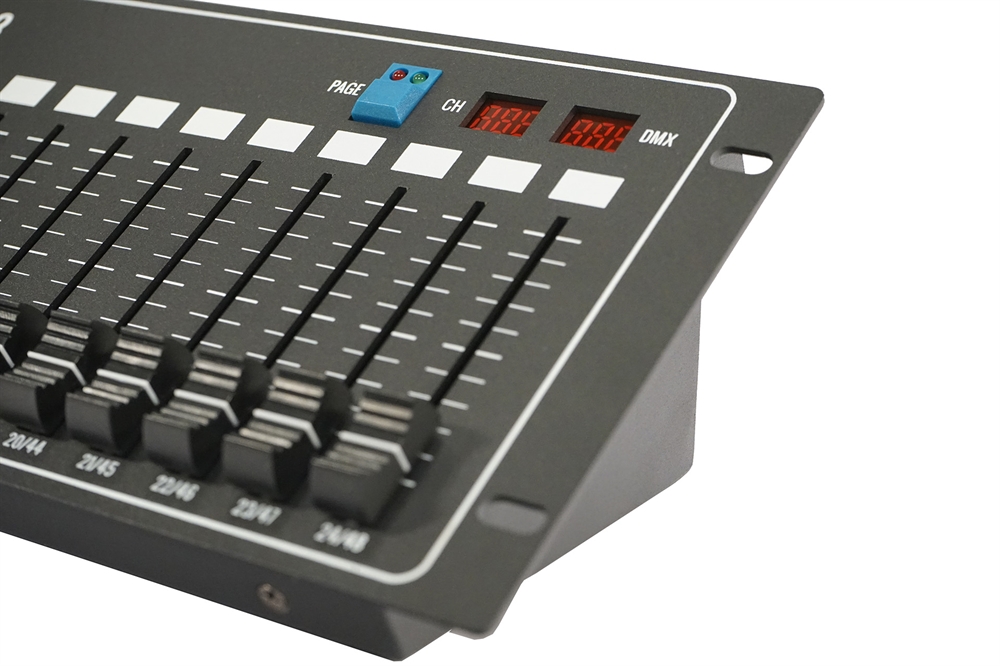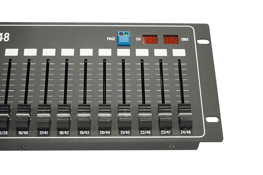 48-kanals kontrolkonsol med 24 skydeknapper fordelt på to sider. Konsollen er adresserbar og kan sende DMX-signal fra kanal 1 til 512 (i grupper af 48 kanaler). Den har LED-skærme til visning af kanal og DMX-værdi. Velegnet til styring af dimmere eller som testværktøj.