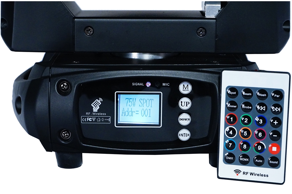 Led 75watt Beam Moving head, 14 colors , 17 gobos , 8 facet prism with variable speed and direction , fresnel lens, powercon in/out , 9/11 Dmx channels.