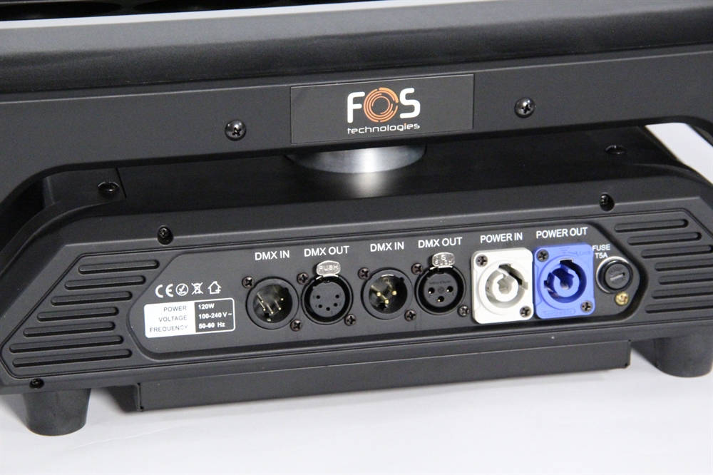 Control Choice between 3 dmx modes: 12/15/39 channels Auto, Master-Slave, Sound modes Pan: unlimited + 16bit fine Tilt: unlimited + 16bit fine LCD display with 4 buttons for accessing menu Voltage: AC100-240V, 50-60Hz Power Consumption: 120W