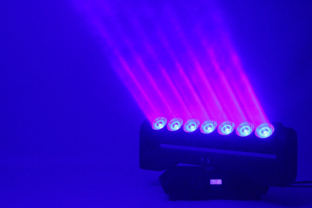 Pixel Blade moving head with 7x15W 4in1 LEDs ultra bright,beam4.5°,High-efficiency 67 mm PMMA optics , Dimmer: 0-100% .
