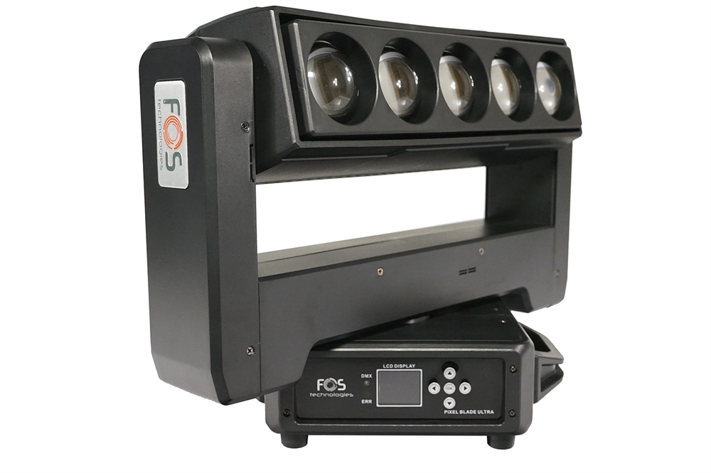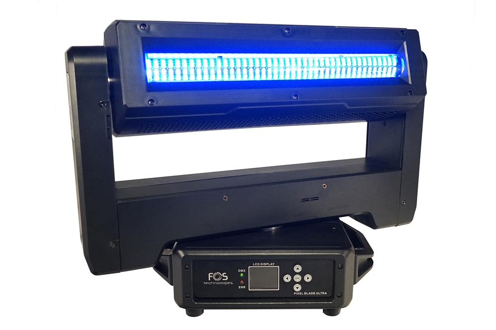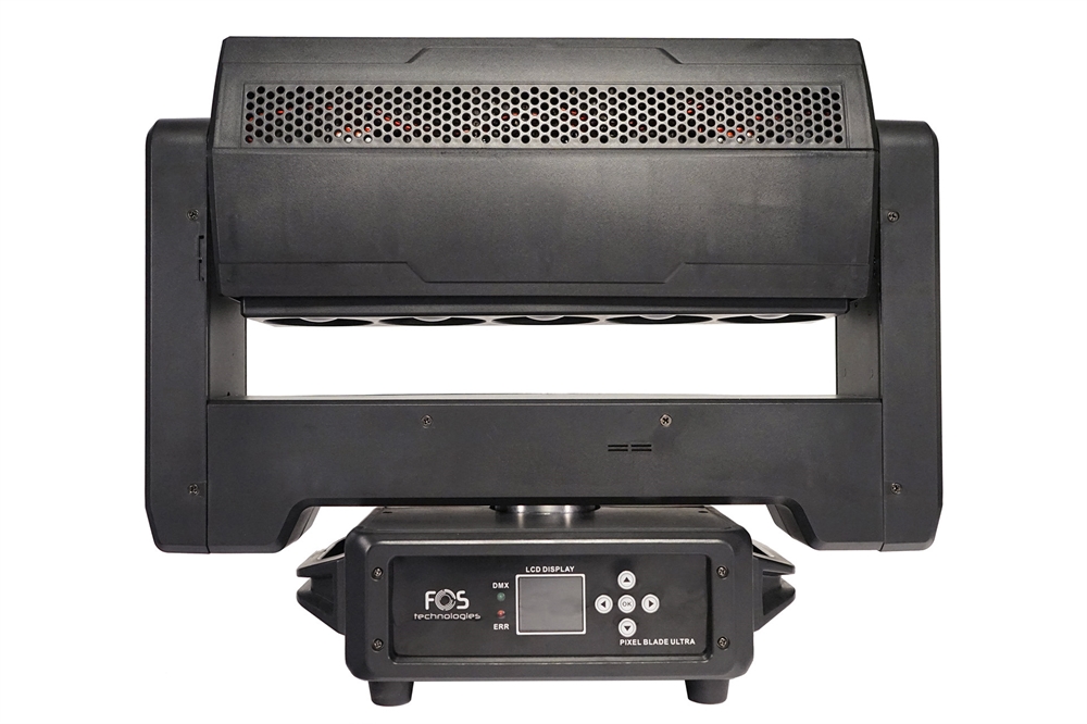 Pixel blade moving head, 5x 60W RGBW 4in1 LED, Zoom: 3.8°- 50, back side strobe:42x 3W White LED + 84x 0.3W RGB 3in1 LED, 14 sections pixel control, each section 9pcs led. Channel: 24CH/29CH/105CH, Beam, Wash, Strobe Multiple Effect, Pan Tilt infinite rotating, 13kg
