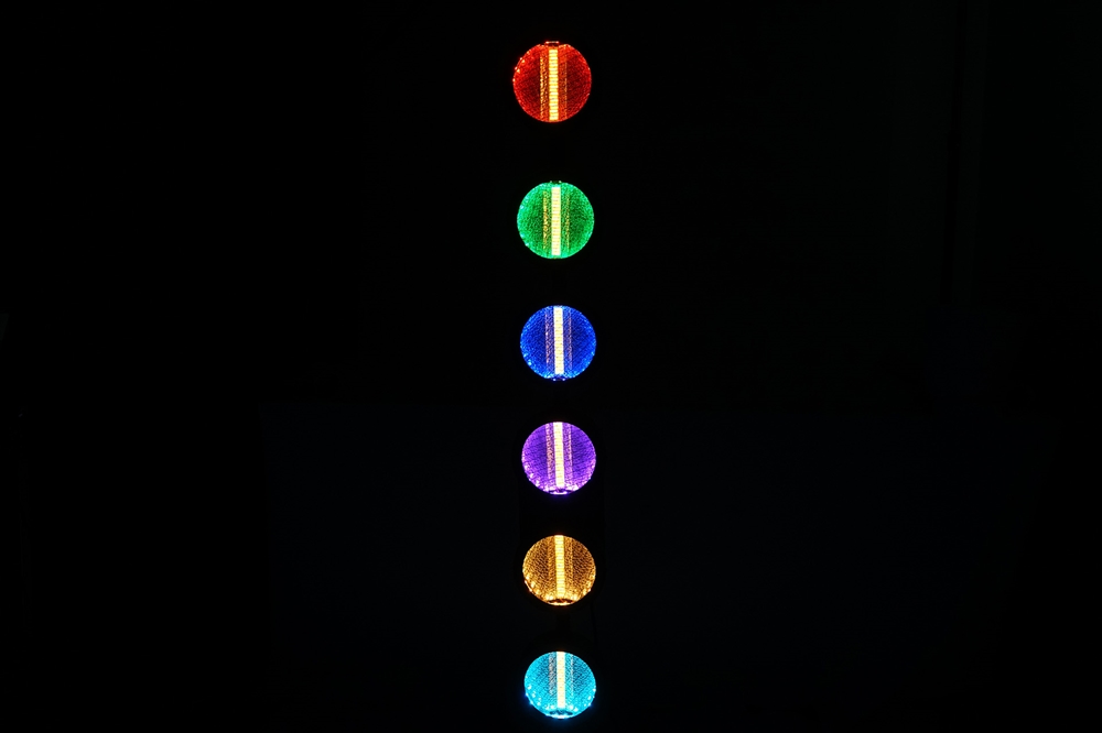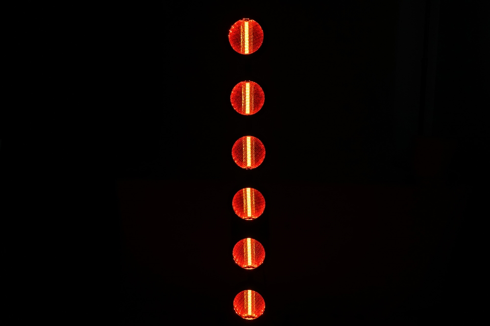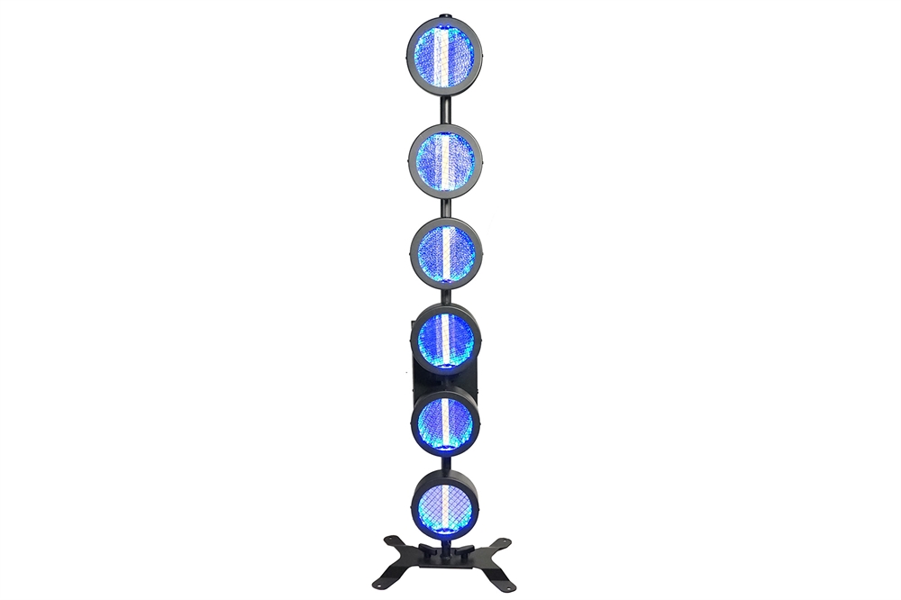Based on 6 main warm white LED light sources of 60 Watt each, and 144x 0,5 RGB 5050 SMD LED, as background light effect.