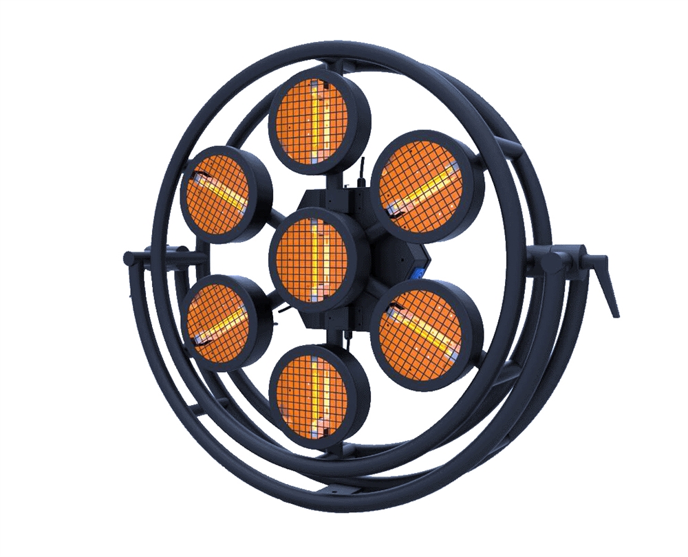 Retro Halogen with 7x300W lamps , Lamp life: 2000 Hours , DMX Linear Dimmer , 7 DMX ch , Pixel Control , Size 86x96.6x17cm , 12.5kg.