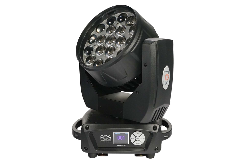 Wash / Beam moving head , 19 RGBW 15w 4in1 LEDs zoom 6-50°, 3 sections pixel control, Preset color macros RGBW mixing with or without DMX controller , LCD display.