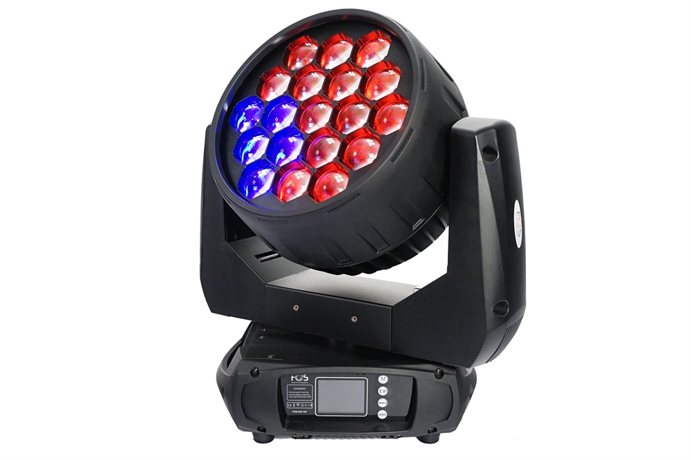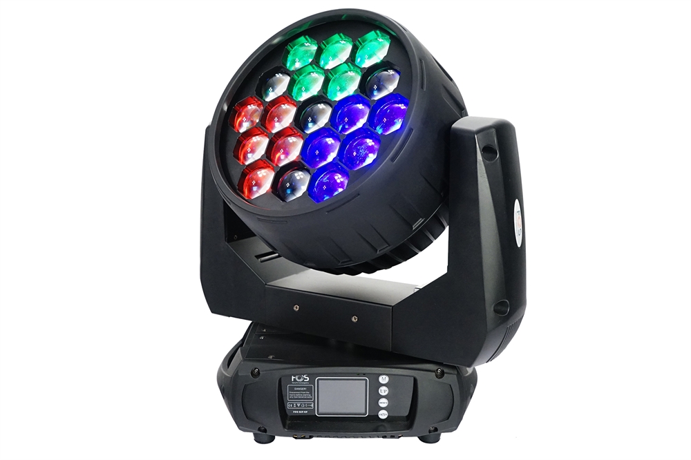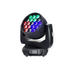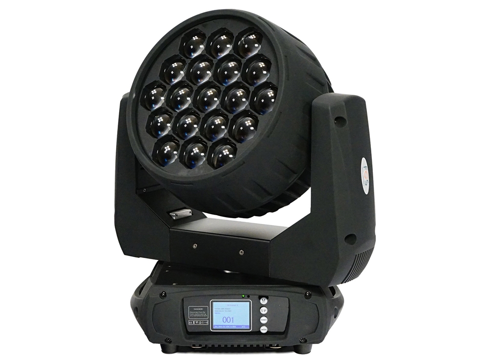 Wash / Beam moving head , 19 RGBW 30w 4in1 LEDs zoom 6-60°, 4 sections pixel control, Preset color macros RGBW mixing with or without DMX controller , TFT display.