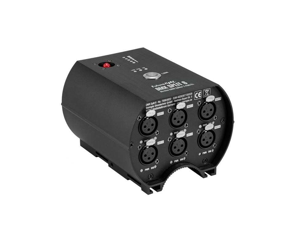 6 x 3-pin XLR (F) monteringsversion Adskilt (galvanisk) med aktiv signalbehandling
