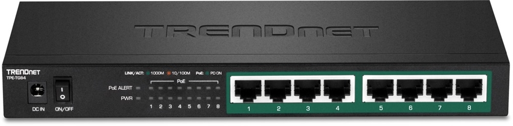 8 ports (RJ45) with 10/100/1,000/2,000 Mbps each, 8 PoE/PoE+ ports