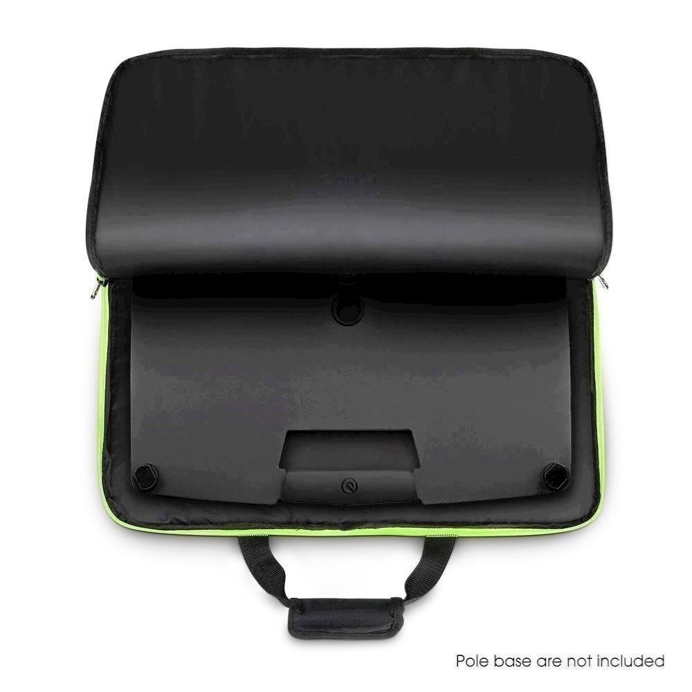 The robust, padded carrier bag, made of water-repellent 1680D ballistic nylon, is specially designed for the square base plates (563 x 563 mm) of the Gravity lighting stands GLS331B and GLS431B. It has two carrying straps with a soft Velcro handle, a sturdy double zip and a see-through window for labels.