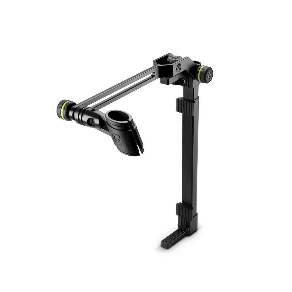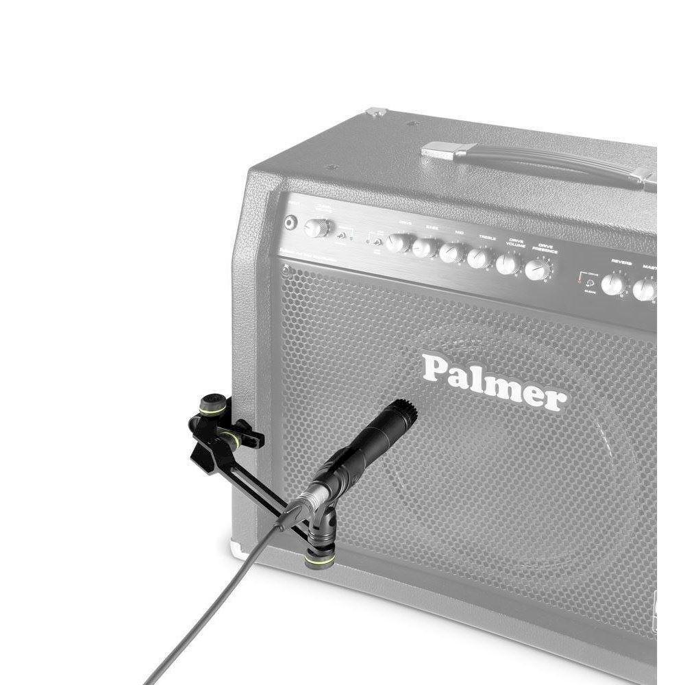 This universal clamping system allows you to mic up a guitar cabinet in an easy and revolutionary way. The spring-loaded clamping arm makes the clamp suitable for almost any type of cabinet and securely fastens to the side or top of a cabinet or combo amplifier. Thanks to its adjustable edge grip, the clamp can be adjusted to fit snugly onto recessed edges. The rigid boom is finely adjustable in both boom angle and microphone depth – this ensures a far more precise and secure mic placement as opposed to using a gooseneck-based clamping system or conventional mic stand.