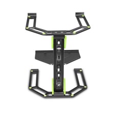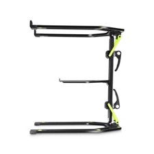 With its revolutionary patented design, this laptop stand is extremely robust, lightweight and easy to transport. With its revolutionary patented design, this laptop stand is extremely robust, lightweight and easy to transport. It is suitable for all formats from 12" to 17" as well as for controllers such as Launchpad, Machine or Push 2. It can be folded to a compact size in seconds. Securely locking eccentric clamps facilitate rapid tilt adjustment and locking of the non-slip rubber-coated shelf and base to provide optimal ergonomic use. The laptop stand is equipped with a table clamp and a clipboard, which are elegantly mounted on the middle rack.
