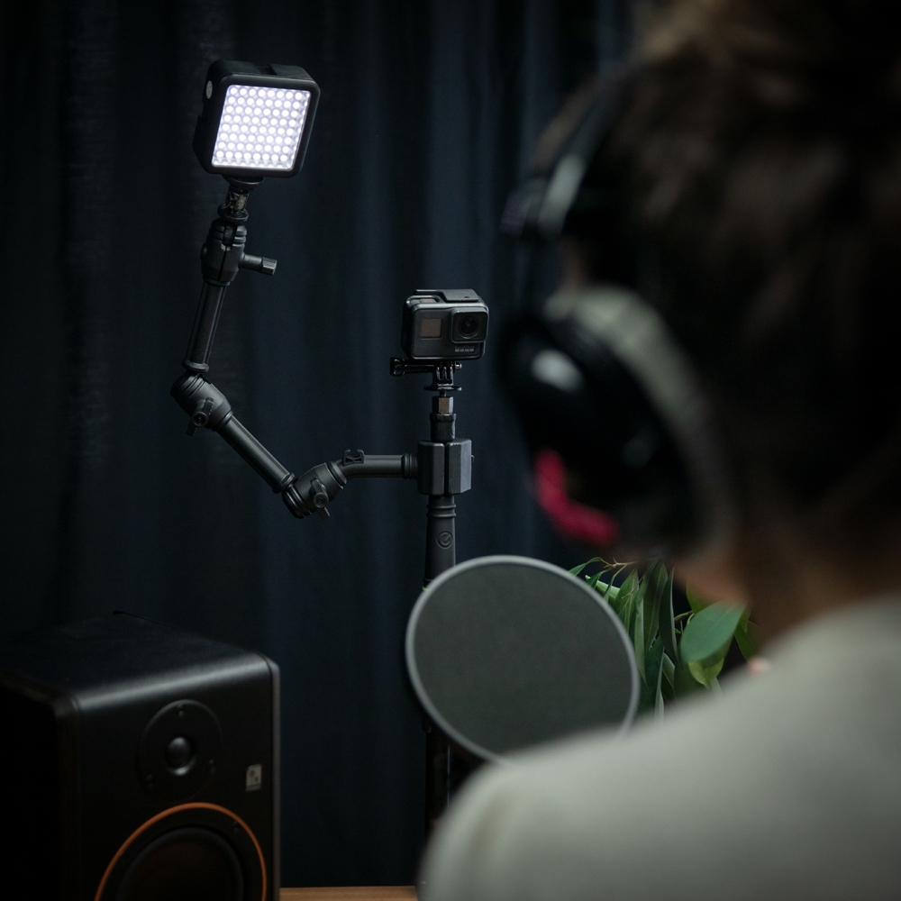 This tool lets you attach microphones, action cams and mobile phone holders to your microphone stand, for example, and set them up flexibly. Its fastening mechanism is quick and easy to assemble. The large clamping range from 15 to 35 mm and the three joints' 360° rotation options allow you to install it as you like. Simply loosen, adjust and tighten the wing-screws. Voila - you're all done!