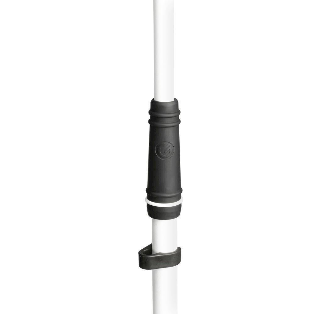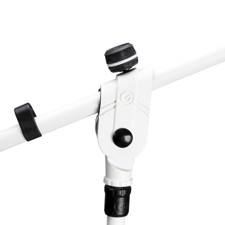 The boom hub features precision 2-point tilt and position adjustment of the telescoping boom arm. A quick-release adjuster enables variable extension to a maximum length of 88 cm, facilitating flexible microphone placement. The smooth yet robust height adjustment grip and screw knobs of the MS 4322 are made from highly durable ABS with a non-slip, soft-touch thermoplastic coating for comfortable use. The custom-designed retainer requires no tools for quick and secure microphone clip attachment.