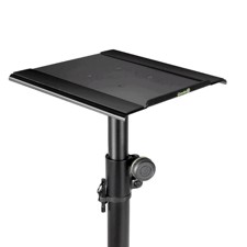 The Gravity GSP 3202 monitor speaker stand features a heavy triangular cast iron base and 25 x 25 cm steel tray with isolating foam rests. It is height-adjustable from 90 to 150 cm for optimum speaker positioning and comes with a set of spikes that mount to the large integrated rubber feet for superior acoustic coupling to the floor.