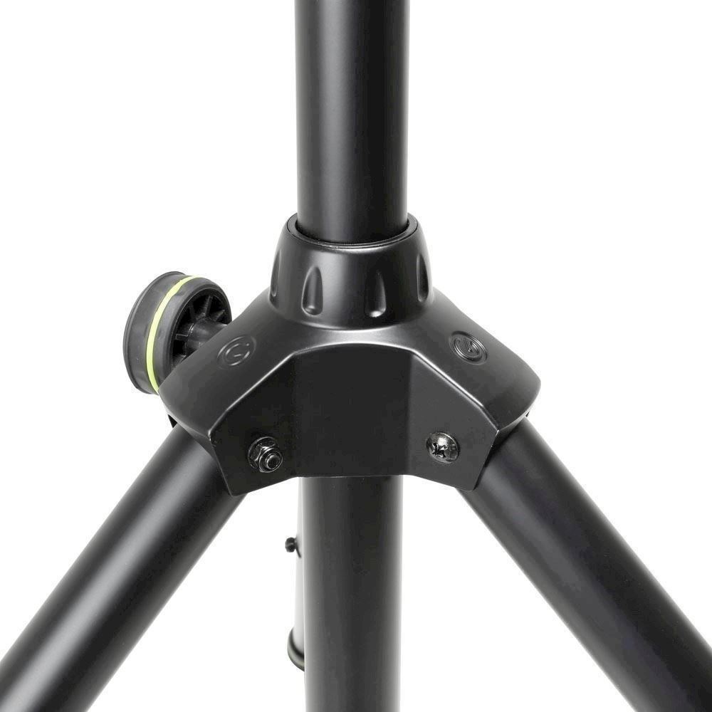 The Gravity GSP 4722 B is a heavy-duty speaker stand with a convenient hand crank and rack and pinion that make it easy to raise your speakers to the desired height. It is made of hard-wearing steel tubing with a folding tripod base and durable cast aluminium leg collar. A large knob set screw and safety pin secure the telescoping pole, which extends from 1.5 m to a maximum height of 2.4 m. The stand is TÜV/GS certified.