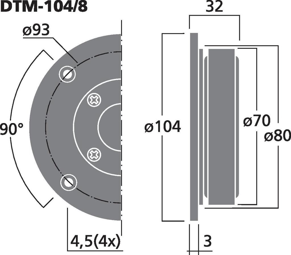 Hi-fi dome tweeters, 45 W, 8 Ω (/8) and 4 Ω (/4)- Textile dome tweeter with Kapton voice coil former